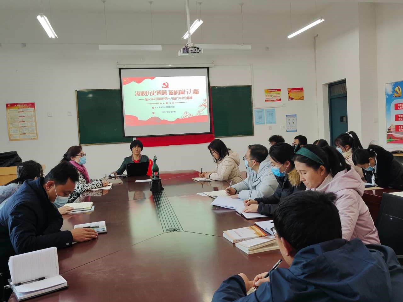 何毅同志將十九屆六中全會(huì)主要精神和核心要義形象直觀的展現(xiàn)給全體教師,言簡(jiǎn)意賅,通俗易懂。晏素珍同志就十九屆六中全會(huì)精神的學(xué)習(xí)交流了自己的感悟和體會(huì)。