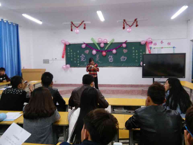 2015年11月20日下午,15級農村能源與環(huán)境技術大專班以感恩父母為主題在明德樓103教室舉行光伏社會化技能課程實踐活動—《完美告白》。參加本次活動的人員有:胡建宏老師、15級農村能源與環(huán)境技術大專班和15級光伏材料大專班全體學生。