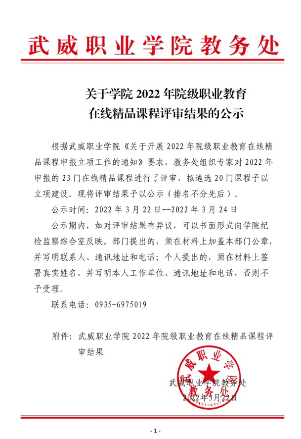 關于學院2022年院級職業(yè)教育在線精品課程評審結果的公示