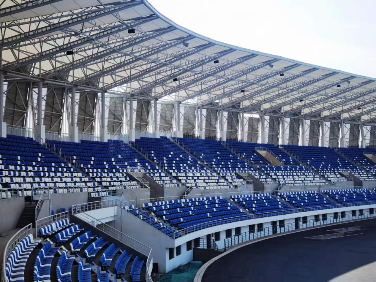 武威市體育場建設項目工程體量大、工藝復雜、施工難度大、工程程序多,我們在確保落實疫情防控措施的前提下,強化管理、優(yōu)化流程、抓緊施工,已經完成土建工程、鋼結構工程、燈塔工程、膜結構工程和看臺座椅工程。項目正按照時間節(jié)點有條不紊加快建設,目前運動場地草坪、塑膠鋪設工程及室外配套工程正在有序推進中。