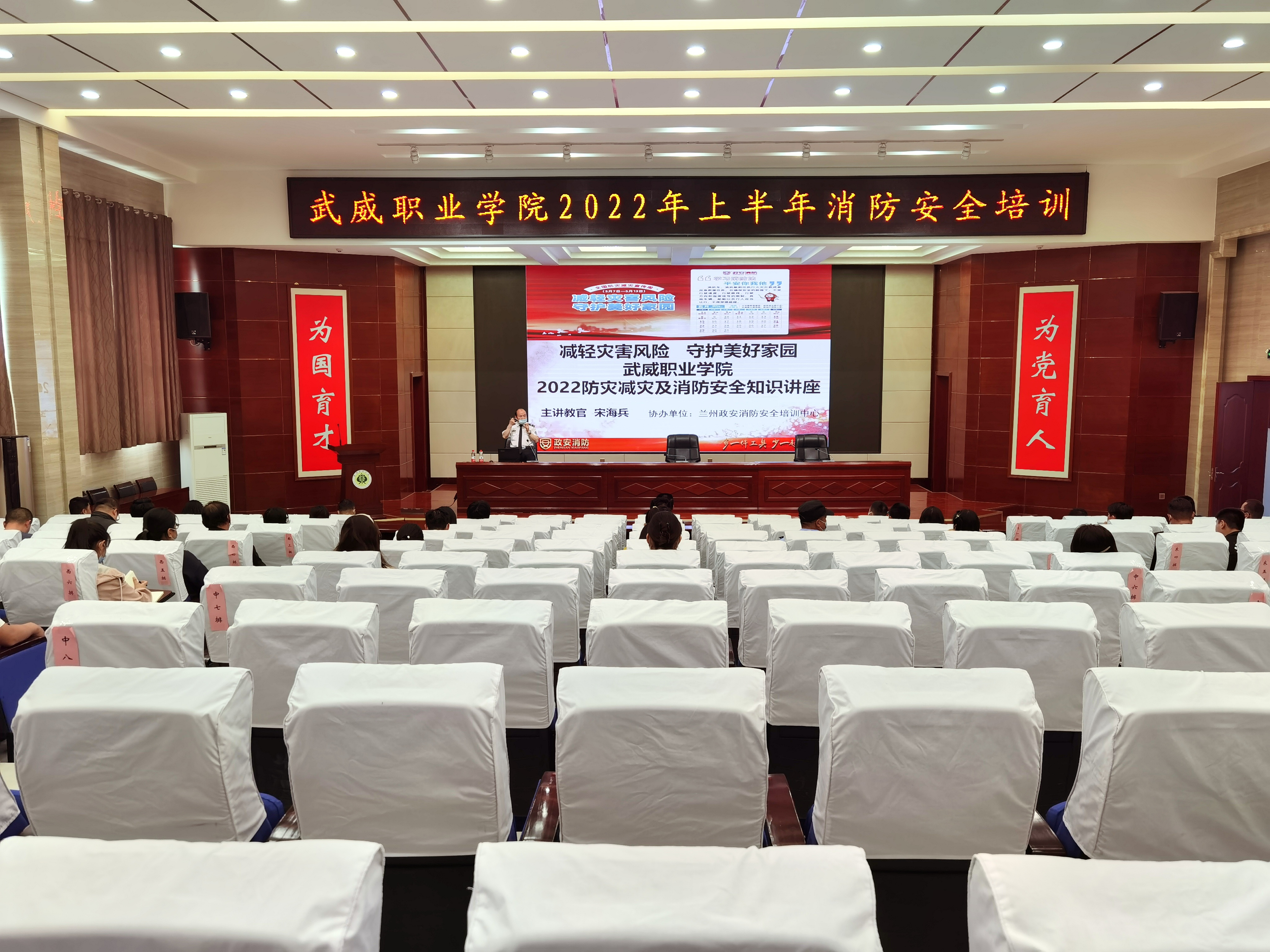 5月18日下午,學(xué)校在大學(xué)生發(fā)展中心菁英廳舉辦了2022年上半年消防安全知識培訓(xùn)。蘭州政安消防教官宋海斌應(yīng)邀作了“減輕災(zāi)害風(fēng)險,守護美好家園”專題講座。各部門、二級學(xué)院安全信息員、實驗實訓(xùn)室管理員、新進教師和消控室、學(xué)生食堂等重點管理崗位人員參加了培訓(xùn)。