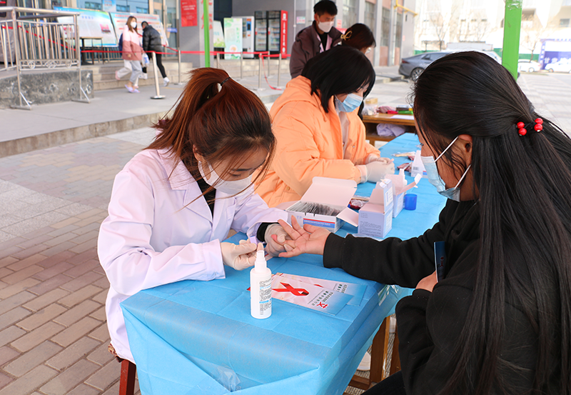 12月1日,學院護理系紅絲帶協(xié)會聯(lián)合涼州區(qū)衛(wèi)生健康局、涼州區(qū)疾控中心,在二號食堂門口及荷花池開展了“世界艾滋病日”青年學生咨詢檢測活動,活動中對260余名學生進行了免費艾滋病檢測,并予以獎品鼓勵,組織了防艾知識宣傳志愿隊伍現(xiàn)場發(fā)放宣傳手冊,制作并贈送紅絲帶標志400余個。
