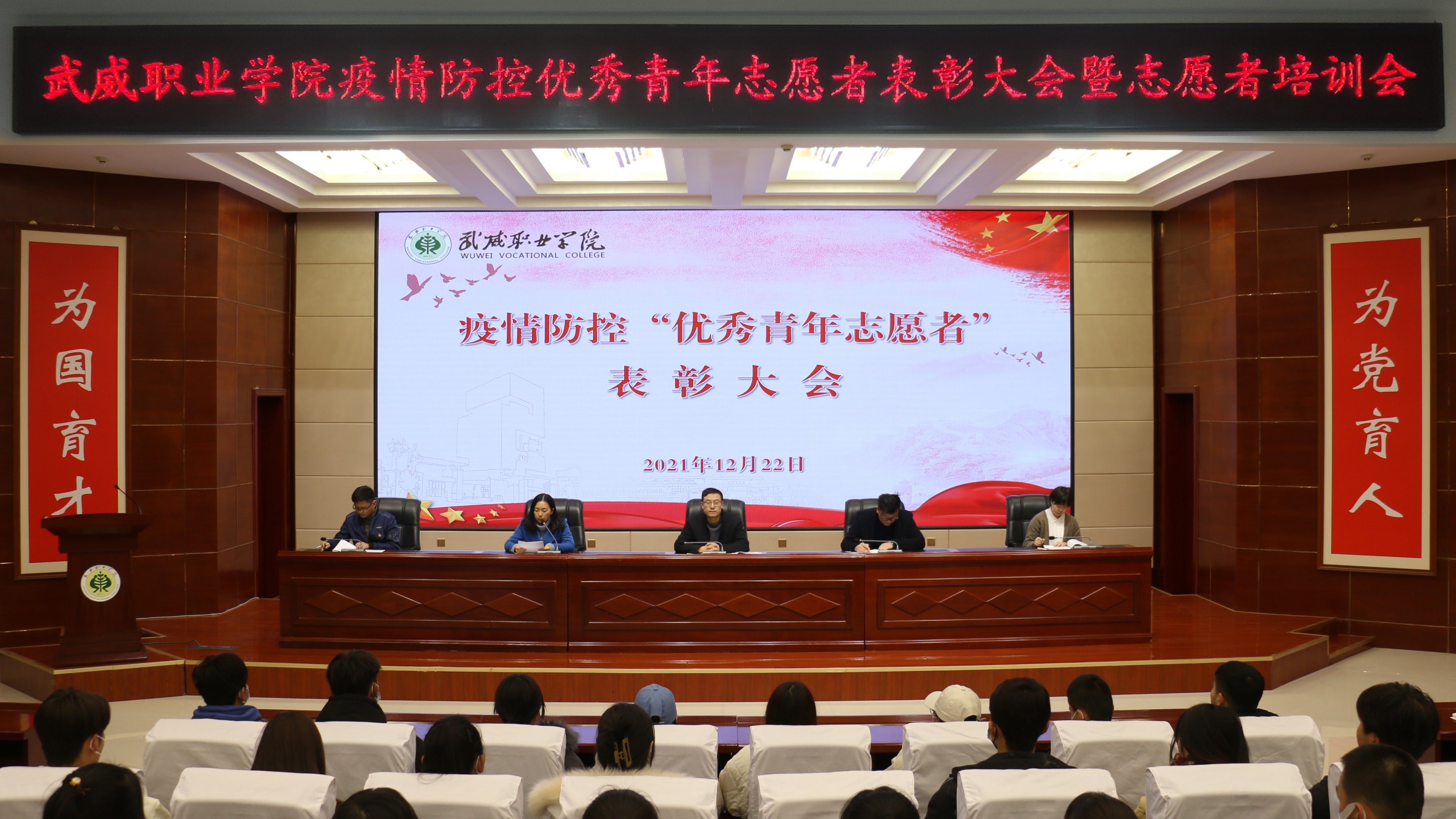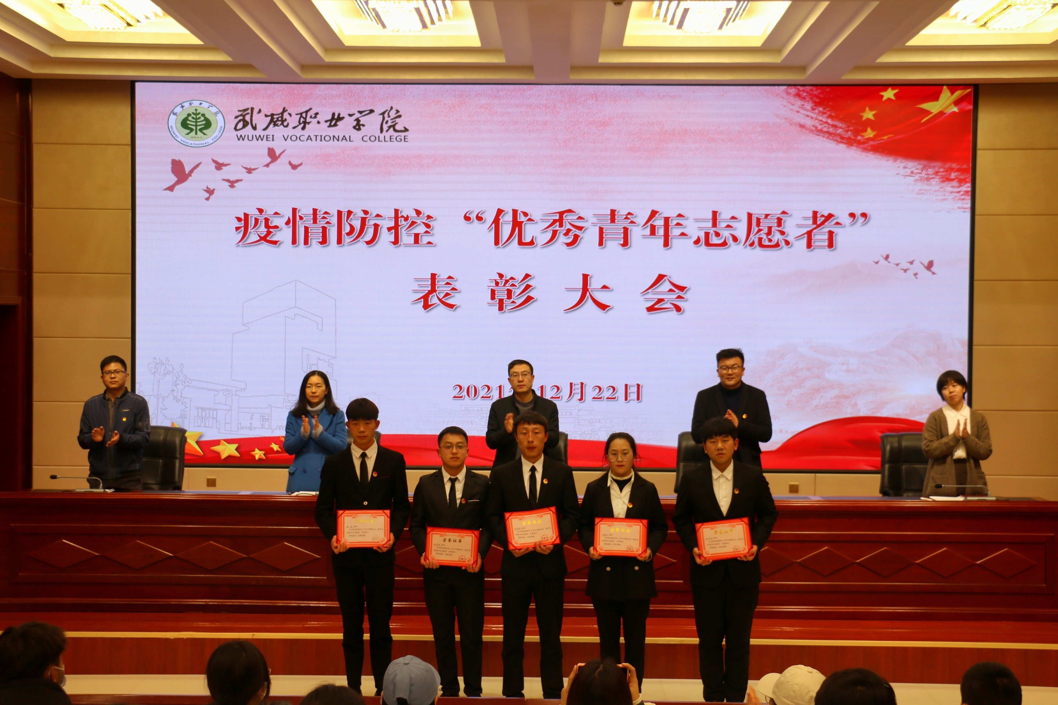 在表彰大會(huì)上,宣讀了《武威職業(yè)學(xué)院關(guān)于對疫情防控期間優(yōu)秀青年志愿者進(jìn)行通報(bào)表揚(yáng)的決定》,為疫情防控期間優(yōu)秀青年志愿者代表頒發(fā)了榮譽(yù)證書。
