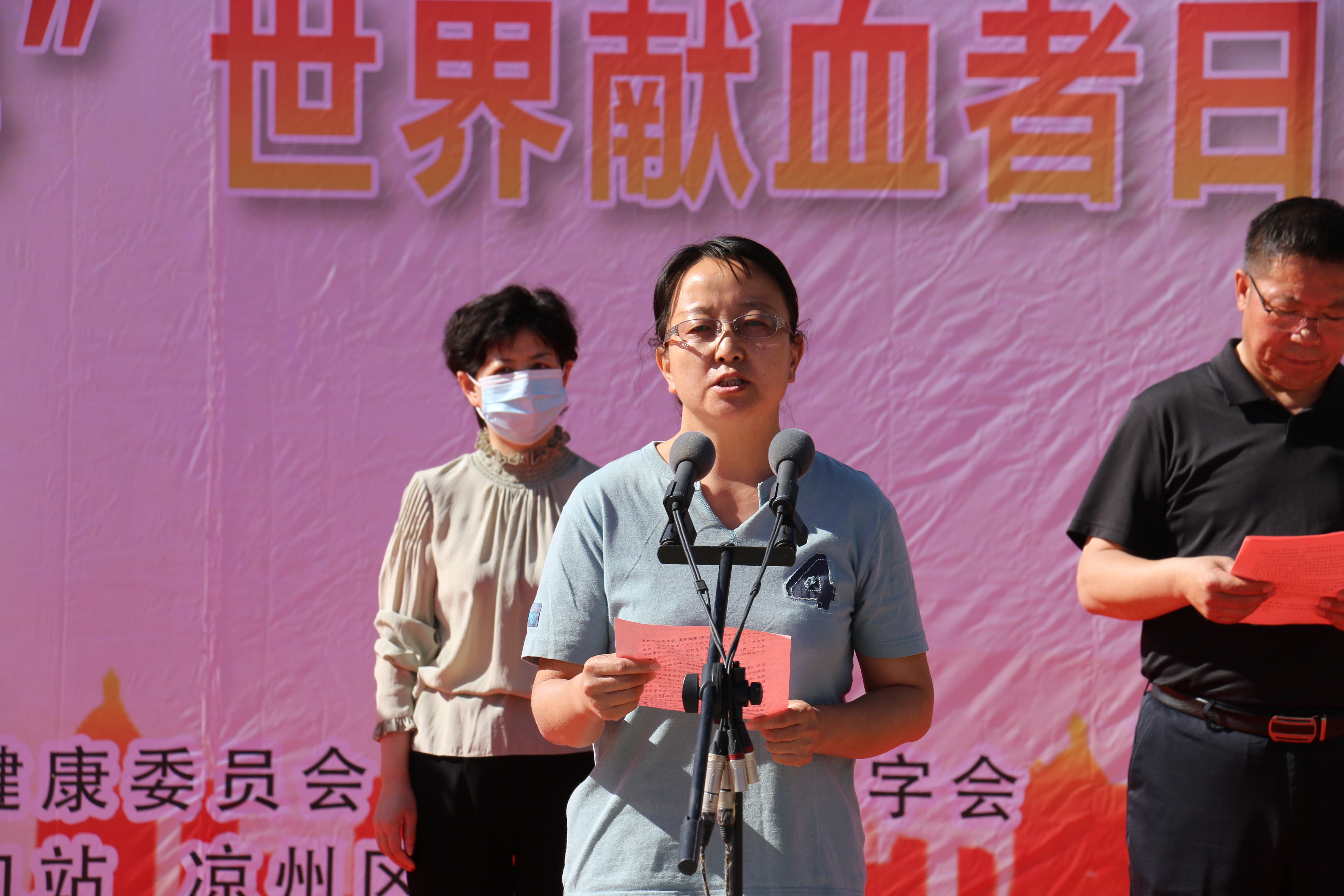 6月14日上午,由市衛(wèi)健委,市紅十字會主辦,市中心血站、涼州區(qū)衛(wèi)健局承辦的“獻血是一種團結行為。加入我們, 拯救生命”慶祝第十九個世界獻血者日主題宣傳活動在市文化廣場隆重舉行,市人大常委會副主任劉光美、市政協副主席趙曉暉、市政府副秘書長李懷金出席活動。學校黨委委員、副校長田迎春參加活動,并代表學校發(fā)言。