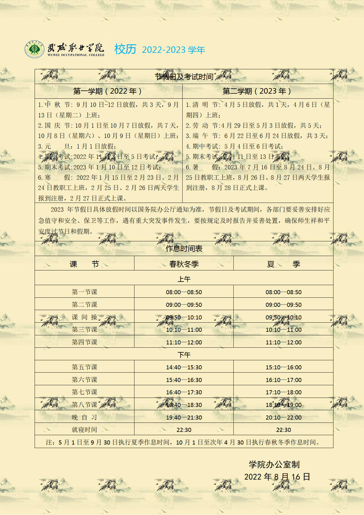 2022-2023學(xué)年校歷