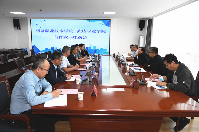 易志軍一行先后到學校紅色文化藝術館、翟存祥思想政治理論課名師工作室、武威市體育場、旅游管理專業(yè)實訓室等地考察并在能源科技樓811會議室召開了兩校合作發(fā)展座談會,趙明向易志軍一行詳細介紹了學校近年來改革發(fā)展、人才培養(yǎng)、招生就業(yè)、合作辦學、“雙高計劃”學校建設等情況。易志軍就酒泉職業(yè)技術學院建設發(fā)展情況進行了詳細介紹。雙方就河西走廊職業(yè)教育與區(qū)域產業(yè)互動發(fā)展、融合發(fā)展、高質量發(fā)展的路徑和方法進行了深入探討,并交流了學校建設和管理方面好的經驗和做法。