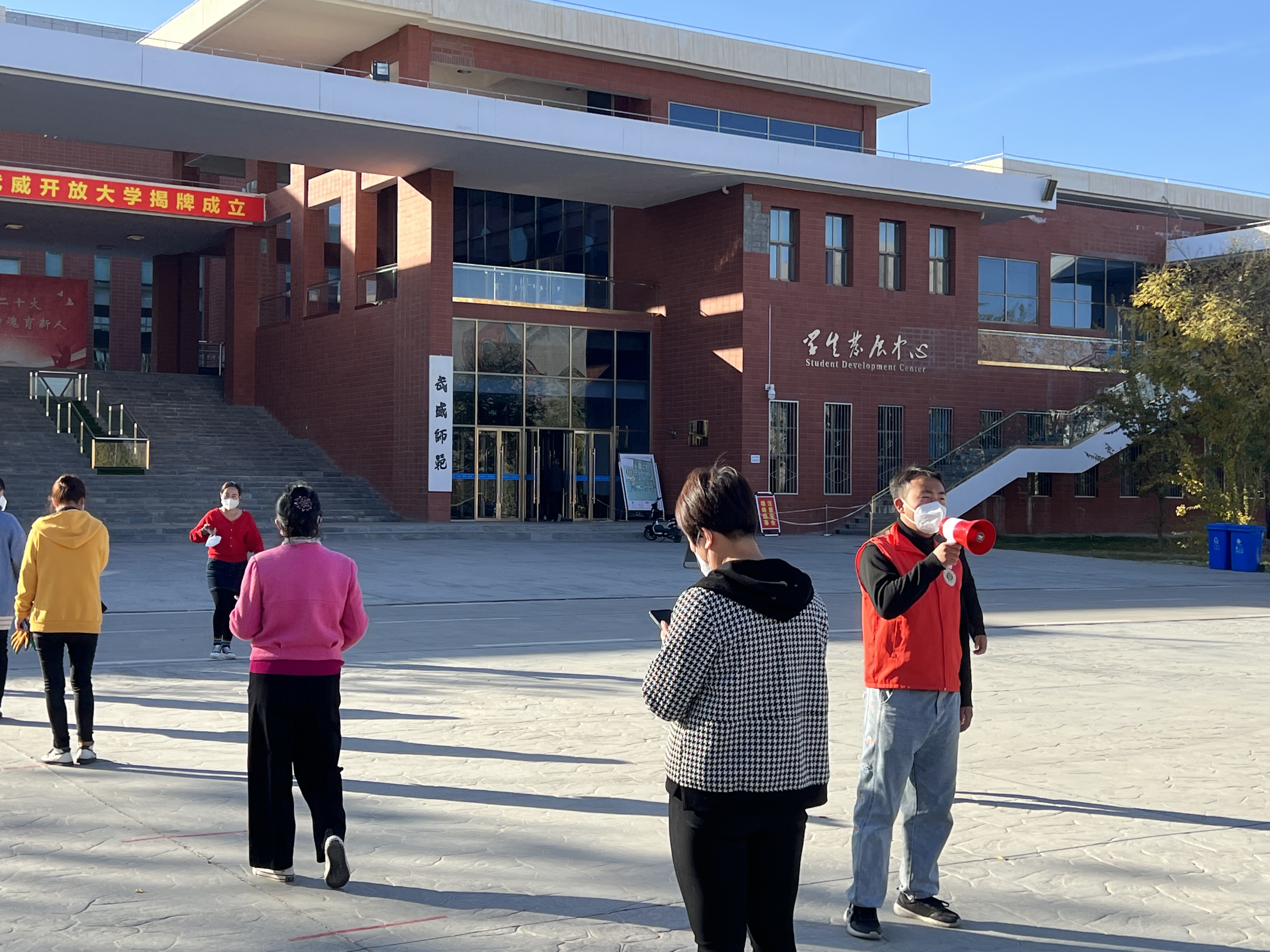 “您好,請測量體溫、掃場所碼。”“請佩戴好口罩,有序排隊……”校學生會的陶玲在學校食堂門口值班時不停地提醒著進出打飯的同學們,這也是她參加校園疫情防控以來每天講得最多的話。自10月13日涼州區(qū)實施臨時管控以來,學校各學生組織聞令而動,身穿“藍馬甲”積極投身校園疫情防控一線,用奉獻溫暖了這個秋天。