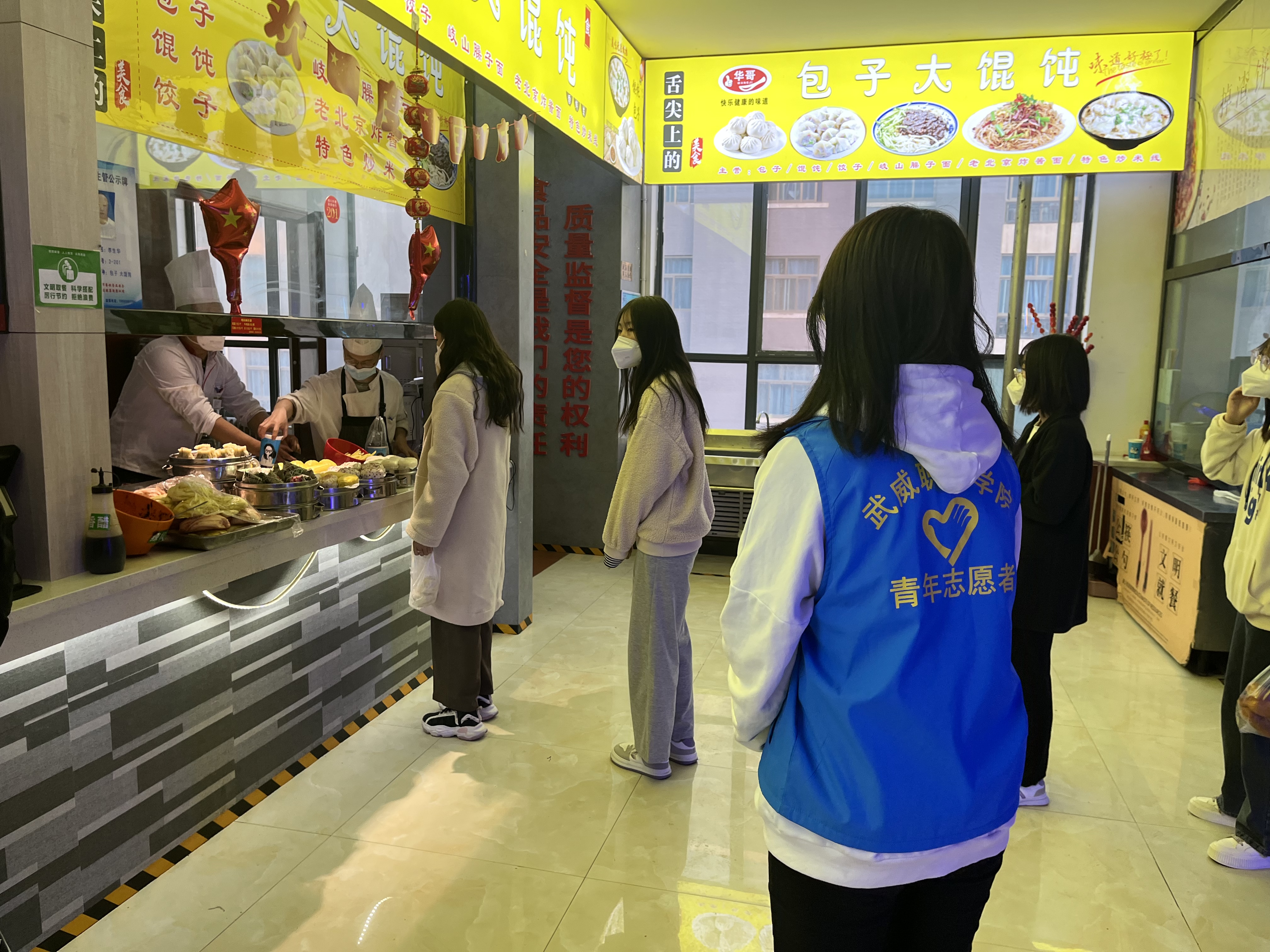 “您好,請測量體溫、掃場所碼。”“請佩戴好口罩,有序排隊(duì)……”校學(xué)生會的陶玲在學(xué)校食堂門口值班時不停地提醒著進(jìn)出打飯的同學(xué)們,這也是她參加校園疫情防控以來每天講得最多的話。自10月13日涼州區(qū)實(shí)施臨時管控以來,學(xué)校各學(xué)生組織聞令而動,身穿“藍(lán)馬甲”積極投身校園疫情防控一線,用奉獻(xiàn)溫暖了這個秋天。