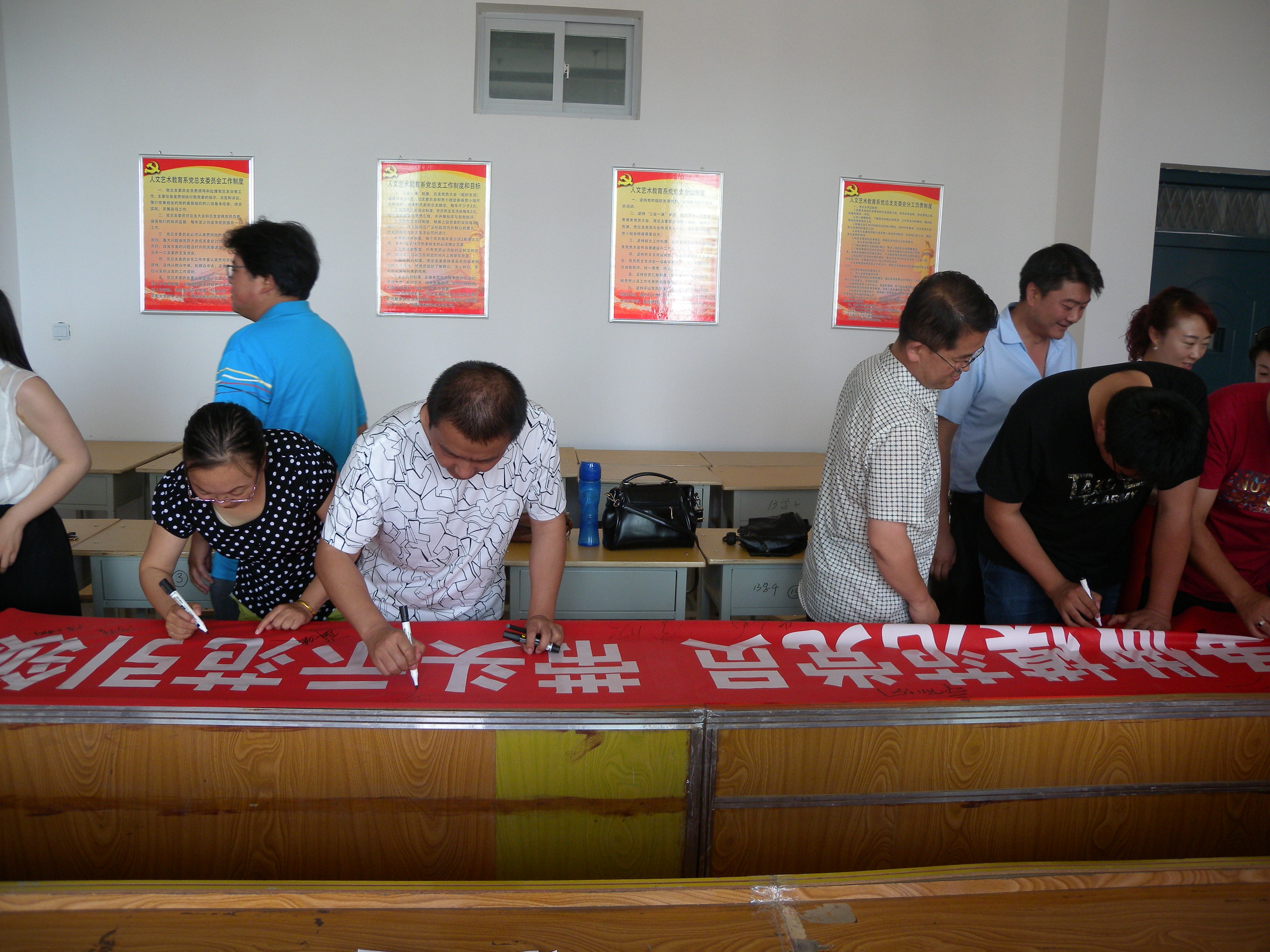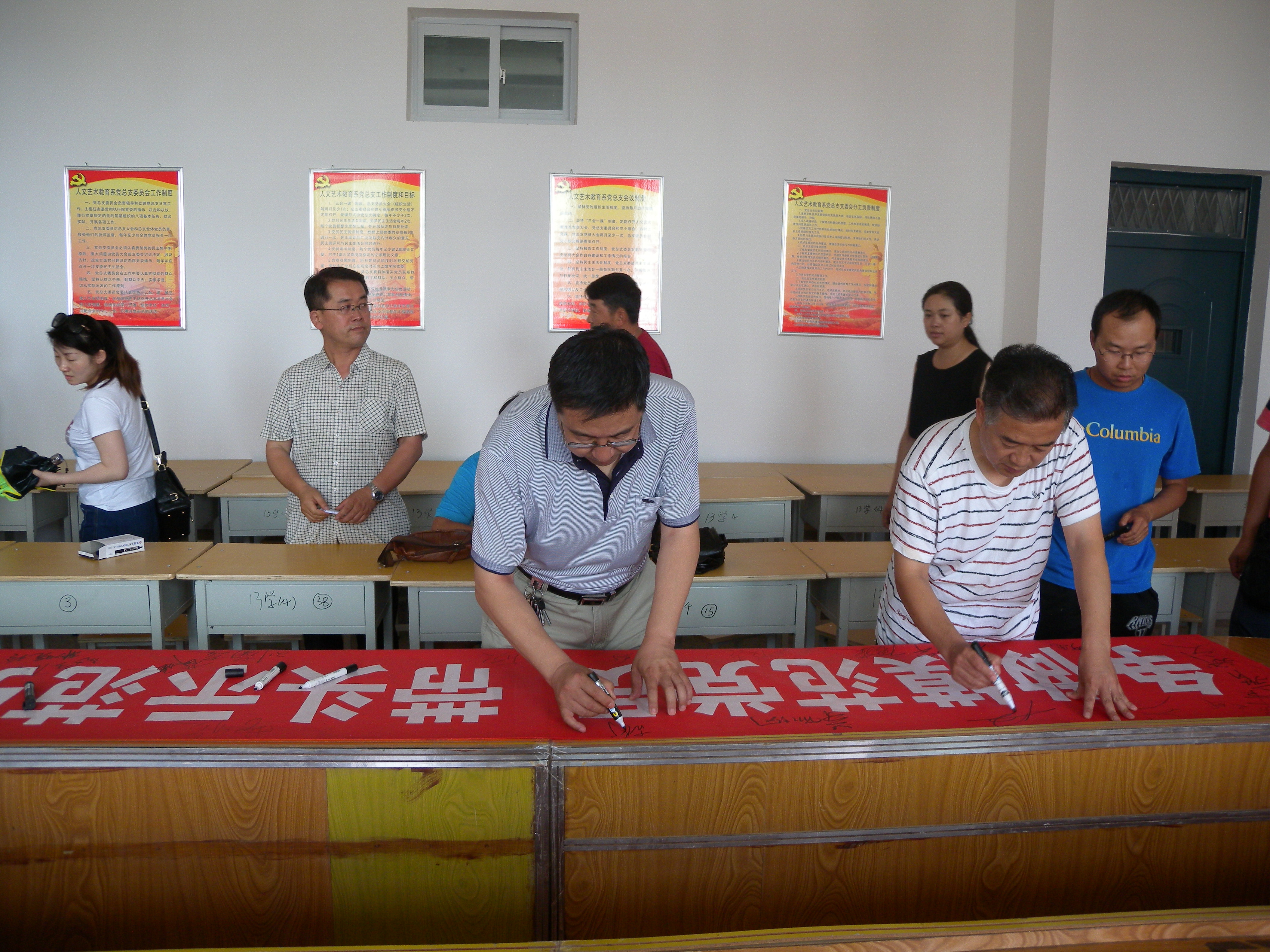 會后,全體師生黨員在“爭做模范黨員,帶頭示范引領(lǐng)”的橫幅上進(jìn)行了簽名活動。本次簽名活動,旨在發(fā)揮“一個黨員就是一面旗幟”的帶頭示范引領(lǐng)作用,激勵廣大黨員做“兩學(xué)一做”的忠實(shí)踐行者,使“兩學(xué)一做”學(xué)習(xí)教育取得實(shí)實(shí)在在的成效。