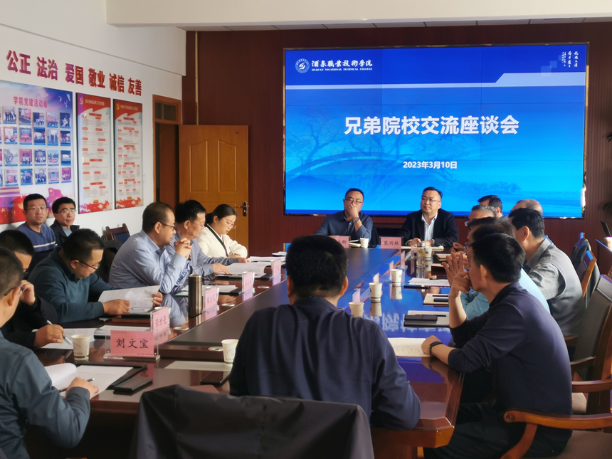 3月10日,學校黨委副書記翟存祥,黨委委員、副校長張開禮一行赴酒泉職業(yè)技術學院,就“雙高計劃”學校建設、本科層次職業(yè)學校申辦、產教融合、社會服務等工作進行學習交流。酒泉職業(yè)技術學院黨委副書記許軍及相關部門負責人陪同考察,并組織召開交流座談會。