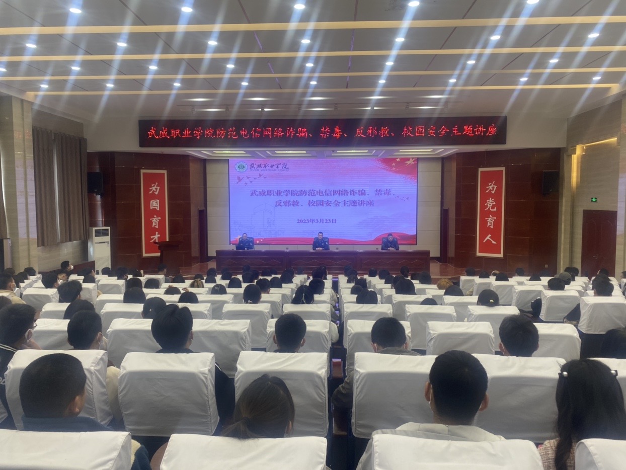 為進一步加強防范電信網(wǎng)絡(luò)詐騙、禁毒、反邪教、校園安全宣傳教育工作,提高廣大師生防范意識,3月24日下午,學校安全保衛(wèi)處邀請涼州區(qū)西關(guān)派出所民警為學校師生開展防范電信網(wǎng)絡(luò)詐騙、禁毒、反邪教、校園安全主題講座。講座由學校安全保衛(wèi)處負責人李欣主持,西關(guān)派出所副所長藺福鵬參加講座。