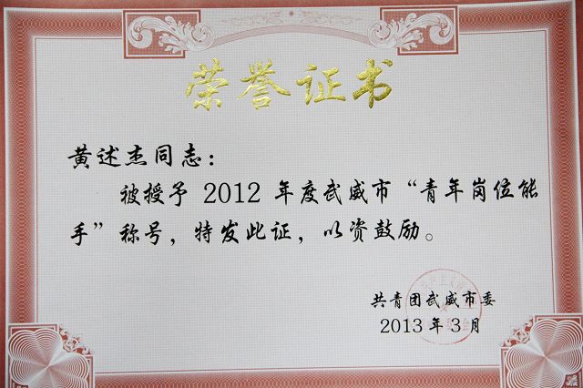 3月8日,在共青團(tuán)武威市二屆七次全委會(huì)上,團(tuán)市委表彰了2012年度先進(jìn)集體和個(gè)人,我系團(tuán)總支被評(píng)為“武威市五四紅旗團(tuán)支部”,系團(tuán)總支書(shū)記黃述杰老師被評(píng)為“武威市青年崗位能手”,11級(jí)光伏發(fā)電技術(shù)及應(yīng)用大專班張鳳鳳同學(xué)被評(píng)為“武威市優(yōu)秀共青團(tuán)員”。
