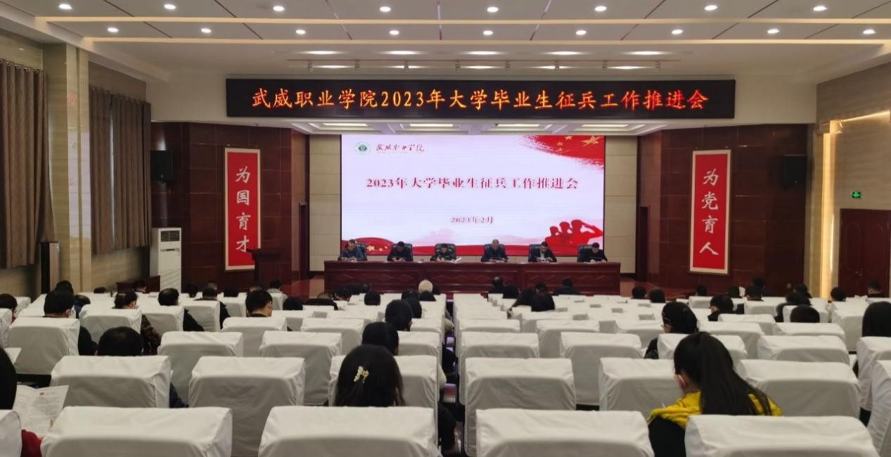 2月10日下午,學(xué)校2023年大學(xué)畢業(yè)生征兵工作推進(jìn)會(huì)在菁英廳召開,學(xué)校黨委委員、副校長王守云,涼州區(qū)人武部中校副部長楊海生出席會(huì)議。