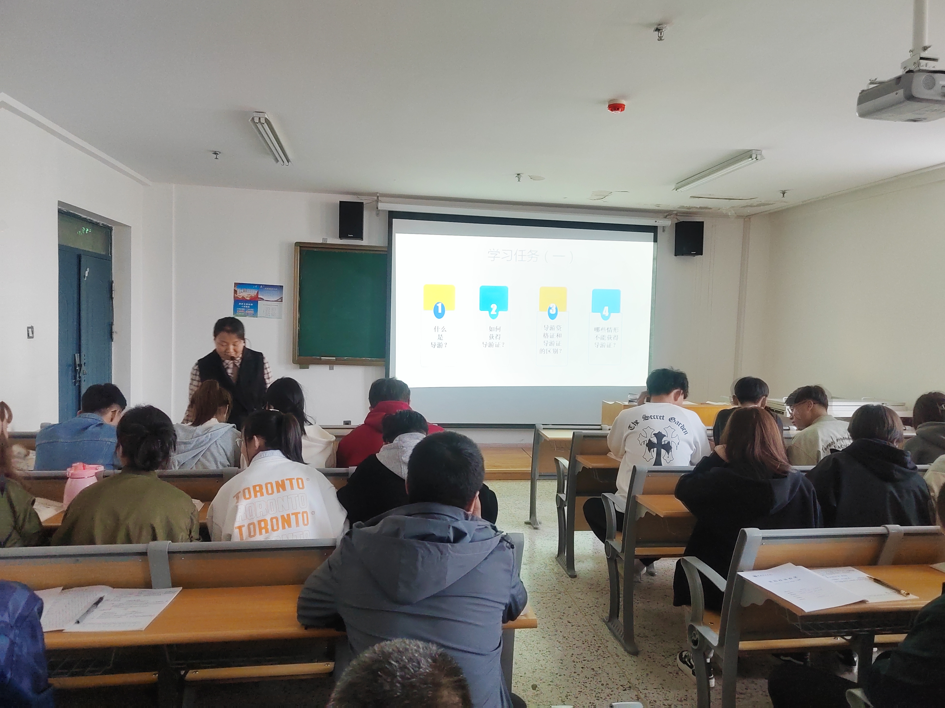旅游教研室教師孔玉玲以《導(dǎo)游管理法律制度》為主題,帶領(lǐng)2022級旅游管理大專班學(xué)生為大家奉上了一堂精彩的研討課。整個過程在課程思政理念的指導(dǎo)下,以“某旅行社委派無證導(dǎo)游帶團造成嚴重后果”引入課題,激發(fā)學(xué)生興趣,緊接著圍繞課程導(dǎo)入案例,采用講授法、討論法、任務(wù)驅(qū)動法等多元化的教學(xué)方式,將課程教學(xué)內(nèi)容與思政元素無縫銜接,實現(xiàn)了顯性培育與隱性熏陶的完美融合,取得了良好的教學(xué)效果。
