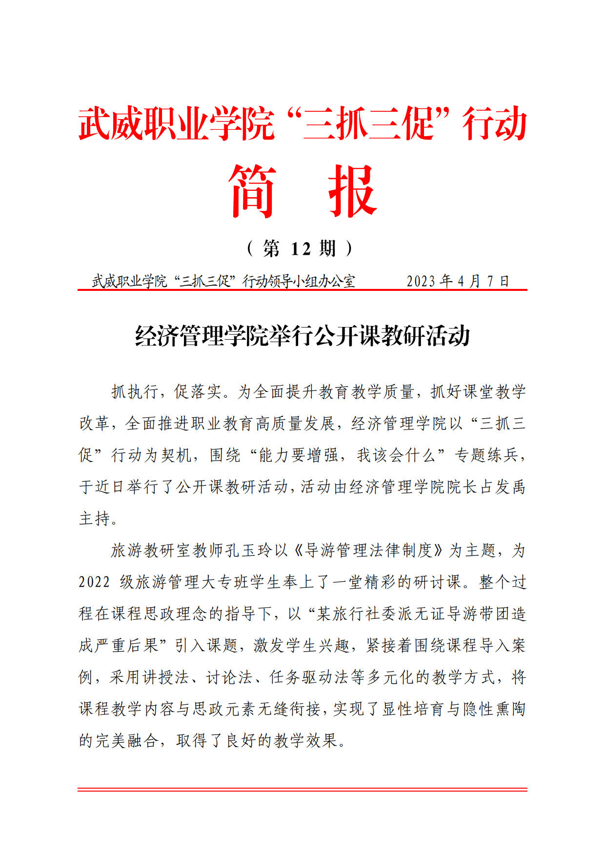 簡報第12期:經(jīng)濟(jì)管理學(xué)院舉行公開課教研活動