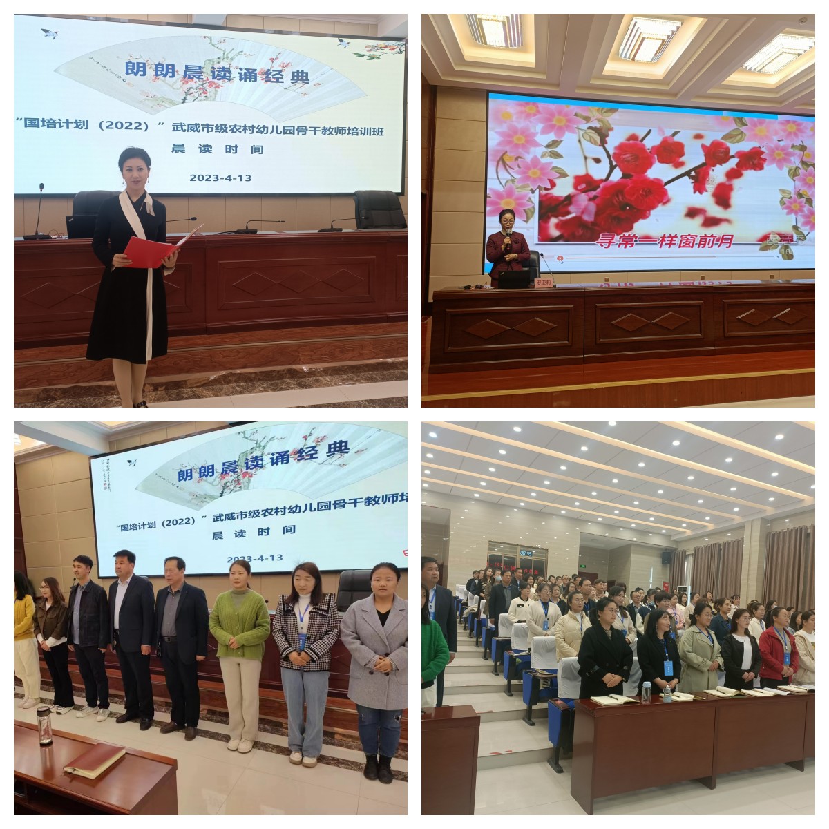 相約晨光,不負(fù)韶華。每天的培訓(xùn)從元氣滿滿的“郎朗晨讀誦經(jīng)典”開始,袁潔、趙穎等老師作為領(lǐng)讀人帶領(lǐng)全體學(xué)員誦讀詩詞、經(jīng)典名篇。袁潔老師領(lǐng)讀的《涼州詞》、趙穎老師領(lǐng)讀的《祖國啊,我親愛的祖國》,時而豪邁,時而溫婉,讓培訓(xùn)學(xué)員感受到與眾不同的浸潤式培訓(xùn)體驗。