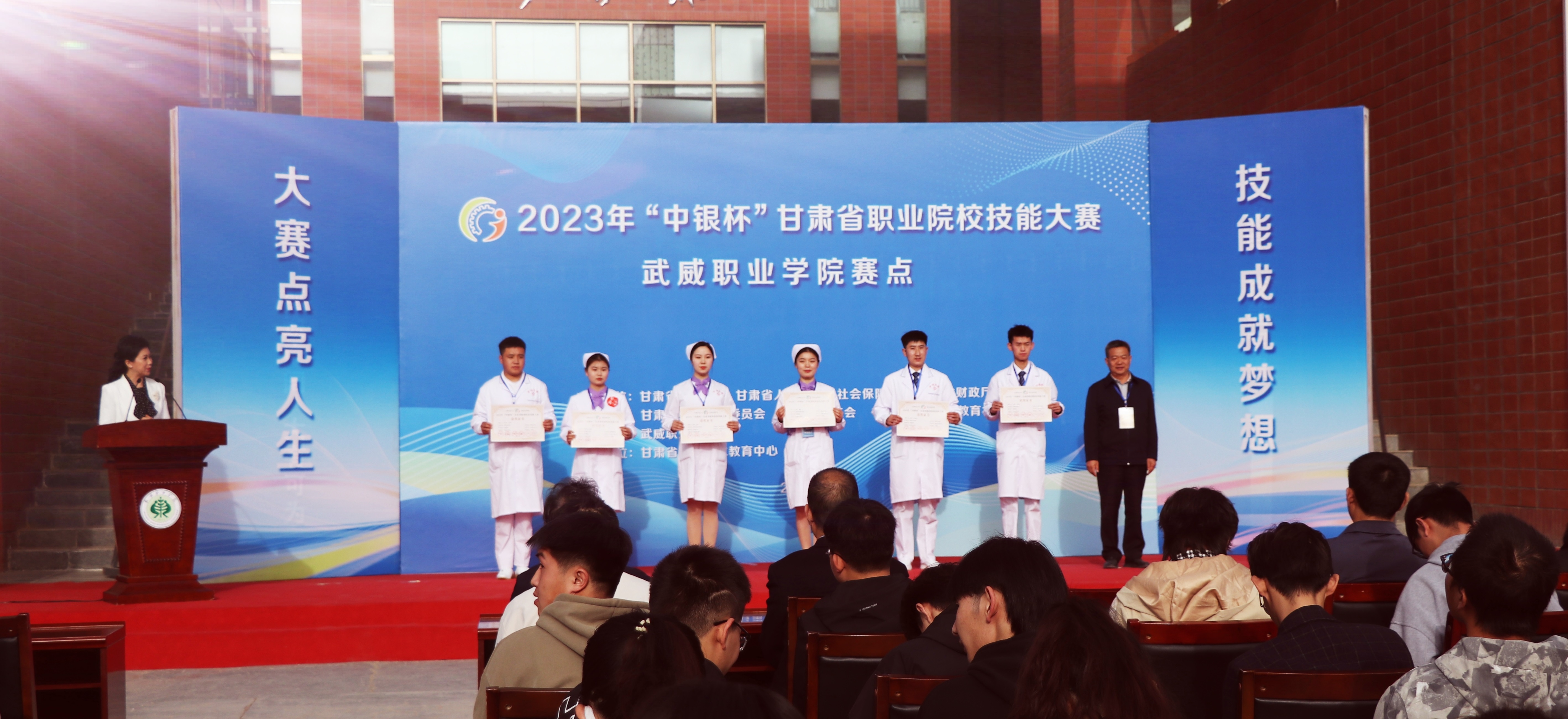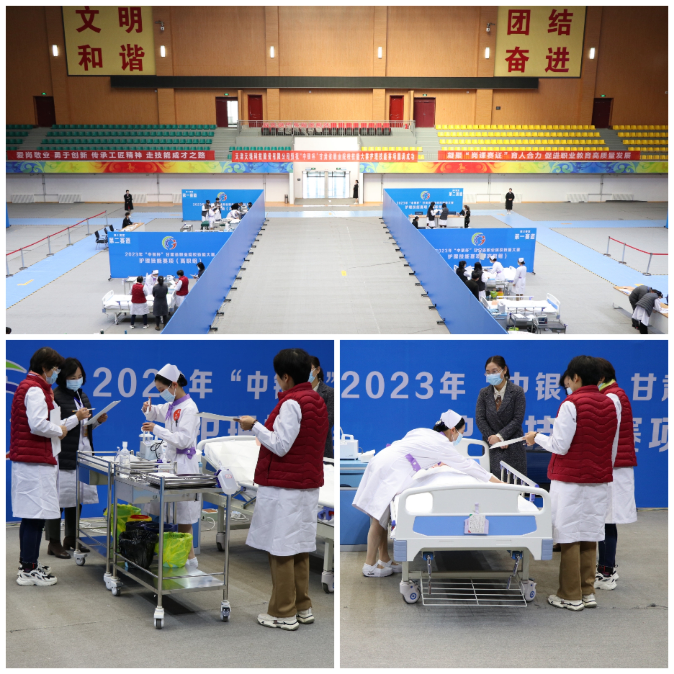 為全面貫徹落實(shí)省委辦公廳、省政府辦公廳《關(guān)于推動(dòng)現(xiàn)代職業(yè)教育高質(zhì)量發(fā)展,加快“技能甘肅”建設(shè)的若干措施》,進(jìn)一步推動(dòng)打造“技能甘肅”工作,促進(jìn)職業(yè)學(xué)校專業(yè)建設(shè)與教學(xué)改革,提高學(xué)生實(shí)踐動(dòng)手能力和職業(yè)素養(yǎng),弘揚(yáng)勞動(dòng)光榮、技能寶貴、創(chuàng)造偉大的時(shí)代風(fēng)尚,引領(lǐng)職業(yè)學(xué)校適應(yīng)行業(yè)現(xiàn)狀及技術(shù)發(fā)展趨勢,檢驗(yàn)教學(xué)成果,促進(jìn)護(hù)理專業(yè)的教育教學(xué)改革。4月10日-4月12日,2023年“中銀杯”甘肅省職業(yè)院校技能大賽護(hù)理技能賽項(xiàng)在武威職業(yè)學(xué)院順利舉行。來自全省10所高職院校的25個(gè)團(tuán)隊(duì)、50名學(xué)生和22名教師選手匯集武威職業(yè)學(xué)院賽場,共同譜寫護(hù)理人的工匠精神和大愛情懷。