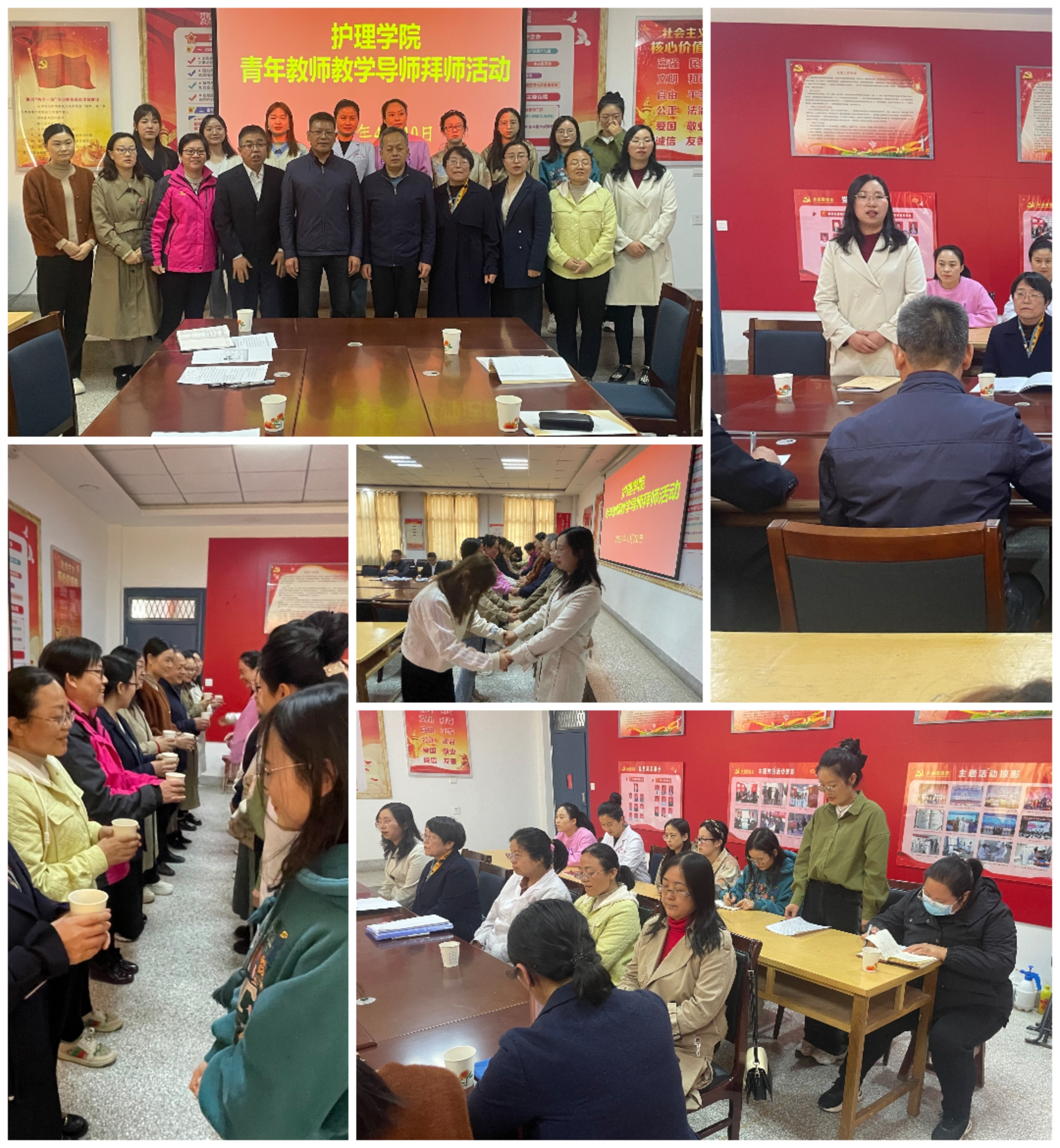 4月20日,學(xué)校黨委委員、副校長王永緒到護理學(xué)院參加新入職教師教學(xué)導(dǎo)師“拜師”活動。會議由護理學(xué)院黨總支書記張建輝主持,新入職教師、教學(xué)導(dǎo)師及部分教師代表參加了此次活動。