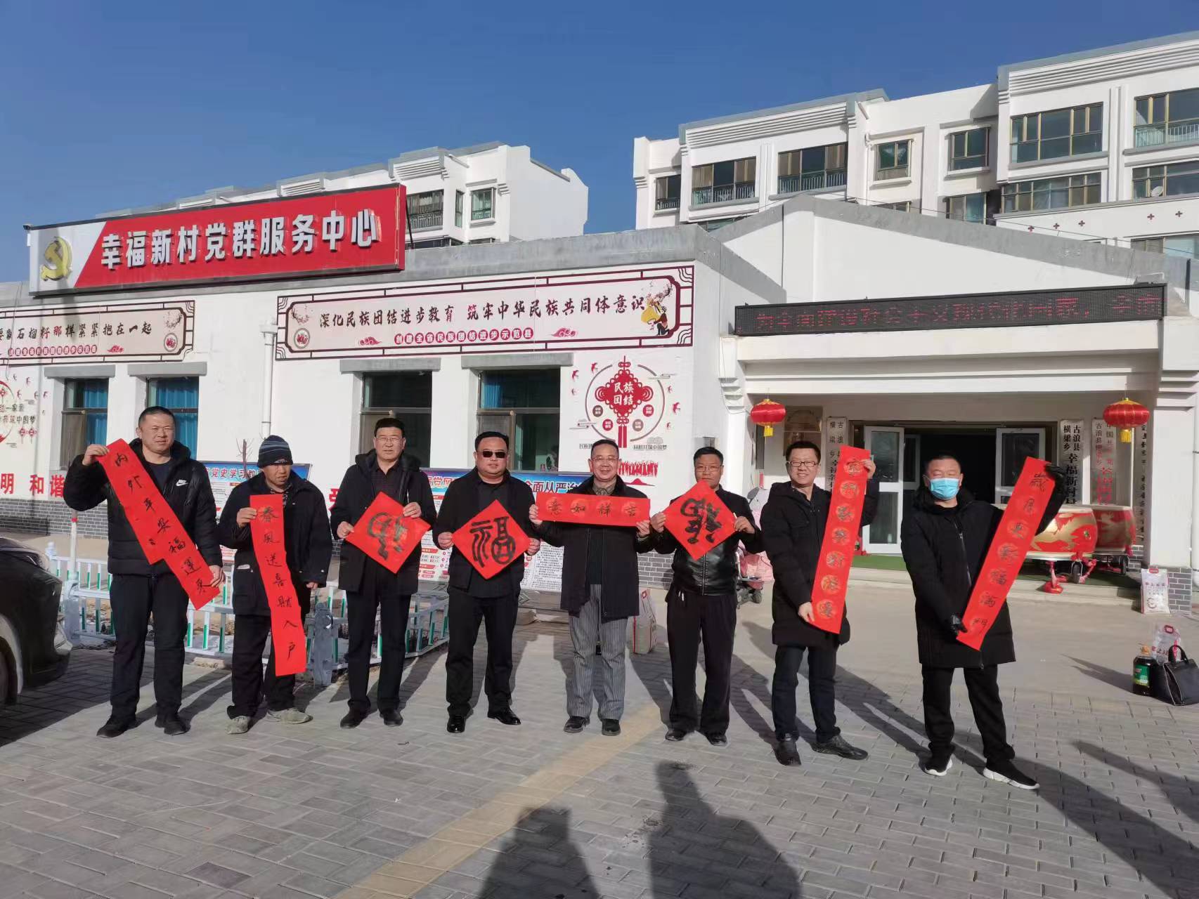 會后,志愿者為村民送上了春聯、福字?!昂眠\常來添富貴,吉星高照永平安”“春歸大地人間暖,福降神州喜臨門”……一副副春聯承載著大家對新年的美好祝福,對未來幸福生活的期許和向往。村民群眾結伴而來,仔細挑選每一副春聯。大家拿到散發(fā)淡淡墨香、帶著濃濃祝福的大紅春聯和福字,臉上洋溢著幸福的笑容。此次活動共送出1400副春聯,3000個福字,將新年祝福送到千家萬戶,不僅弘揚優(yōu)秀傳統(tǒng)文化,也營造了濃濃的新春氣氛,增進村民間的情感。