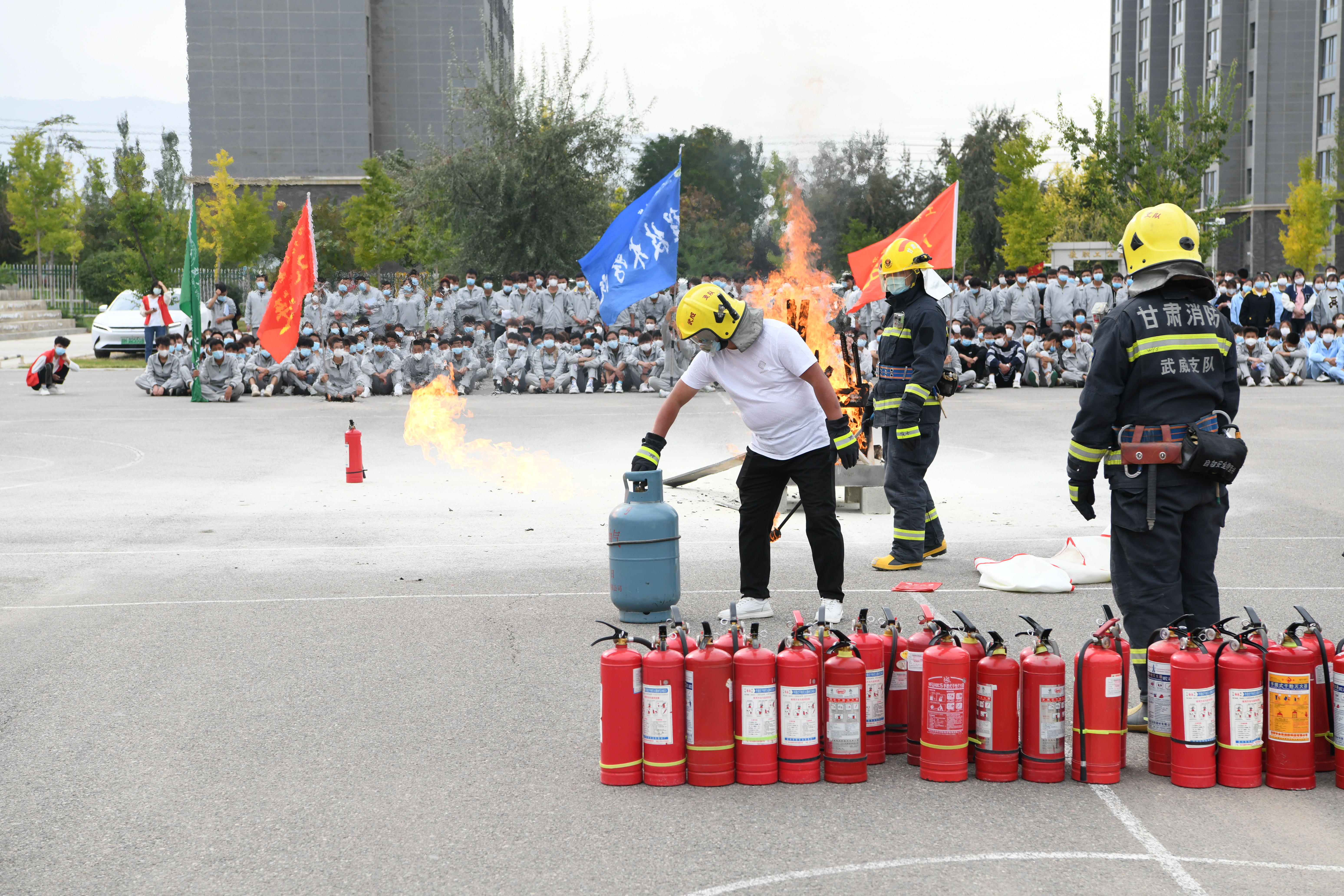 9月30日,學(xué)校聯(lián)合武威市消防救援支隊舉行了2022年秋季消防應(yīng)急疏散暨滅火演練活動。學(xué)校副校長王守云、武威市消防救援支隊涼都特勤站副站長張旭出席活動,安全保衛(wèi)處、學(xué)生工作處、各二級學(xué)院負(fù)責(zé)人和輔導(dǎo)員、班主任現(xiàn)場觀摩演練,約4200多名2022級新生參加了演練。