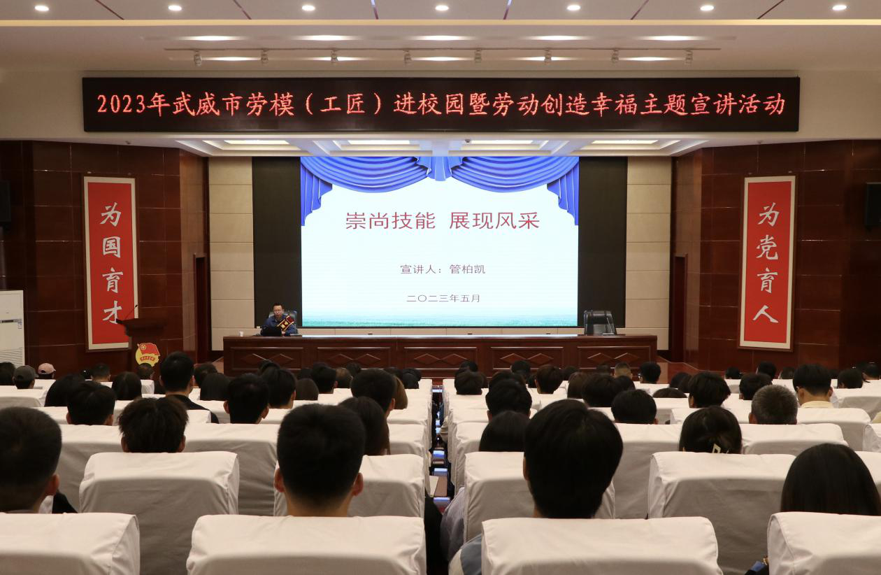 為貫徹落實全國職業(yè)教育大會精神,進一步在師生中大力弘揚勞模精神、勞動精神和工匠精神,不斷推動我?!疤豳|(zhì)培優(yōu)”“技能甘肅”和“雙高計劃”項目建設(shè)工作。5月15日上午,學(xué)校在學(xué)生發(fā)展中心菁英廳舉辦勞模(工匠)進校園暨勞動創(chuàng)造幸福主題宣講活動,邀請“甘肅省勞動模范”“甘肅省青年崗位能手”獲得者、甘肅電投武威熱電公司電氣檢修班班長、安全監(jiān)察主管管柏凱作題為《崇尚技能 展現(xiàn)風(fēng)采》的專題報告。報告會由學(xué)校工會主席金玉龍主持,各相關(guān)部門負責(zé)人、省級“雙高計劃”高水平專業(yè)群師生代表共220人參加報告會。