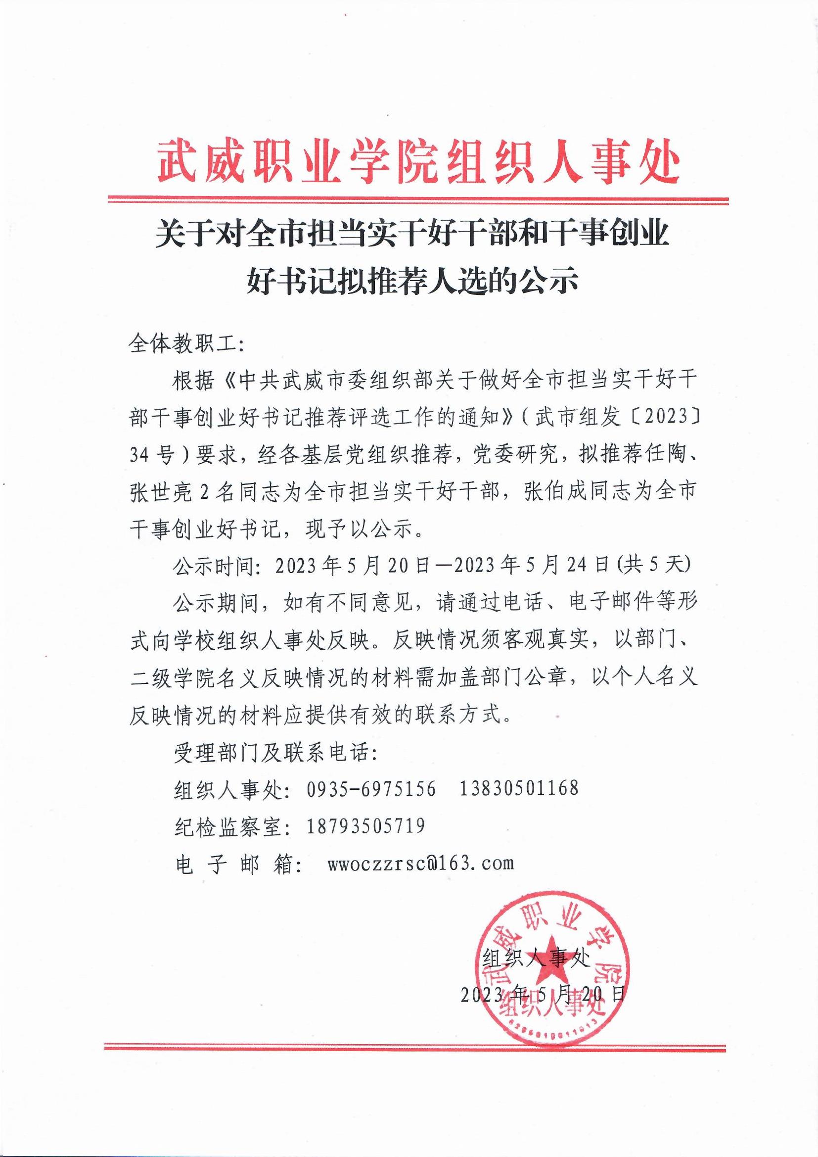 關(guān)于對(duì)校級(jí)擔(dān)當(dāng)實(shí)干好干部、干事創(chuàng)業(yè)好書(shū)記、標(biāo)準(zhǔn)化先進(jìn)黨支部擬表?yè)P(yáng)對(duì)象…