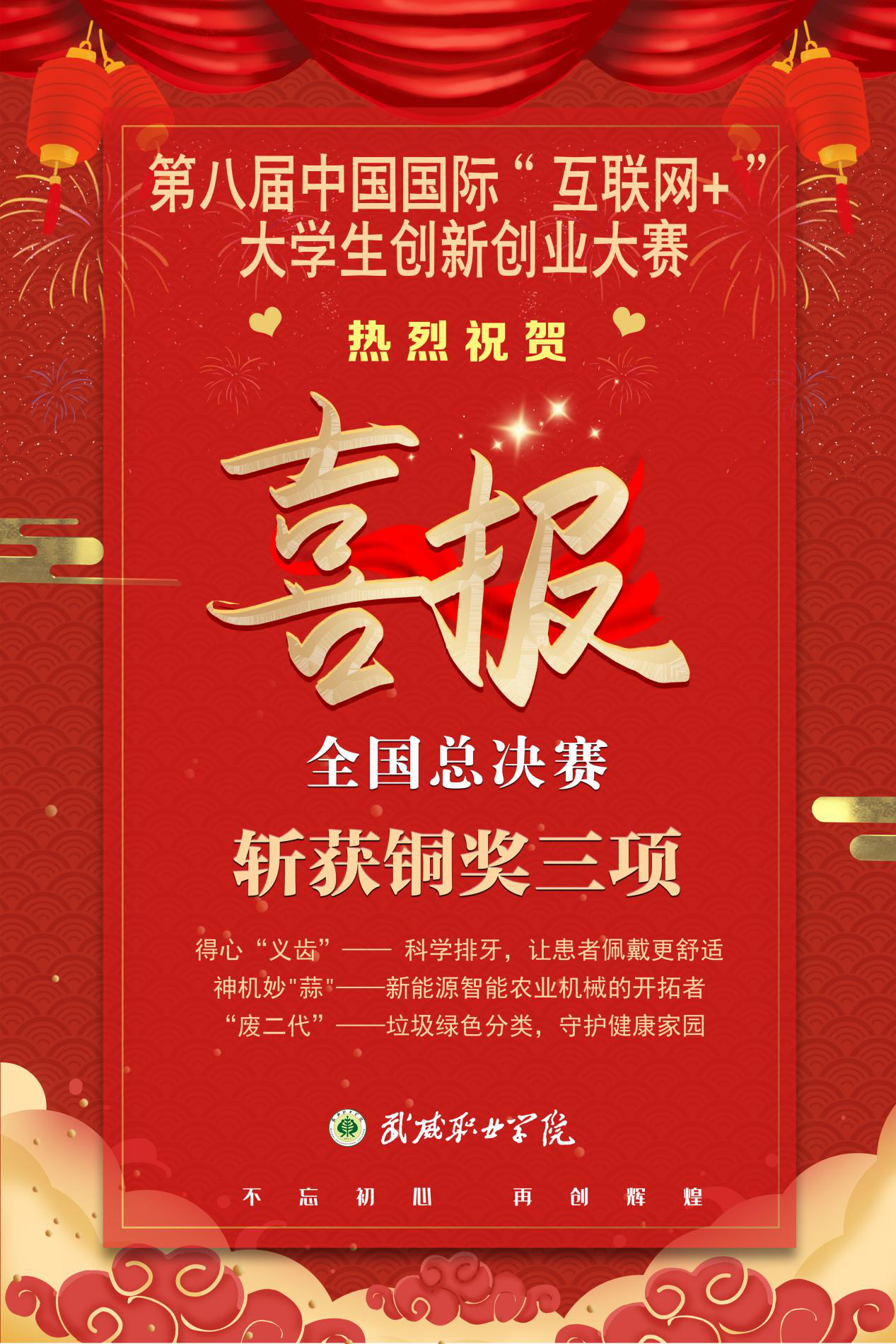喜報(bào) 我校在第八屆中國(guó)國(guó)際“互聯(lián)網(wǎng)+”創(chuàng)新創(chuàng)業(yè)大賽總決賽中喜獲銅獎(jiǎng)3項(xiàng)
