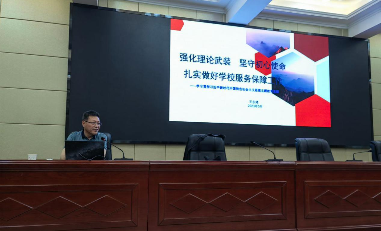 5月30日,學校黨委委員、副校長王永緒以《強化理論武裝?堅守初心使命——扎實做好學校服務保障工作》為題,在學校行樹樓北側學術報告廳講授學習貫徹習近平新時代中國特色社會主義思想主題教育專題黨課。后勤管理處黨員、干部職工參加黨課學習。