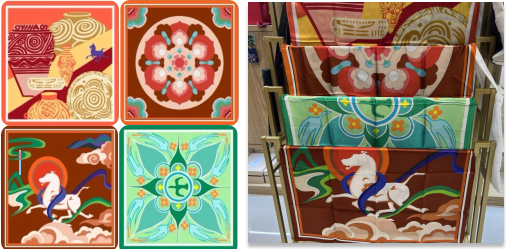 我校師生依托授權(quán)文物紋樣設(shè)計(jì)的“蓮花彩磚”“絢麗彩陶”“七彩天馬”“八鳥(niǎo)朝陽(yáng)”等文創(chuàng)作品,主題鮮明、形式多樣,充分展示了我校在文創(chuàng)產(chǎn)品開(kāi)發(fā)領(lǐng)域的專(zhuān)業(yè)能力。