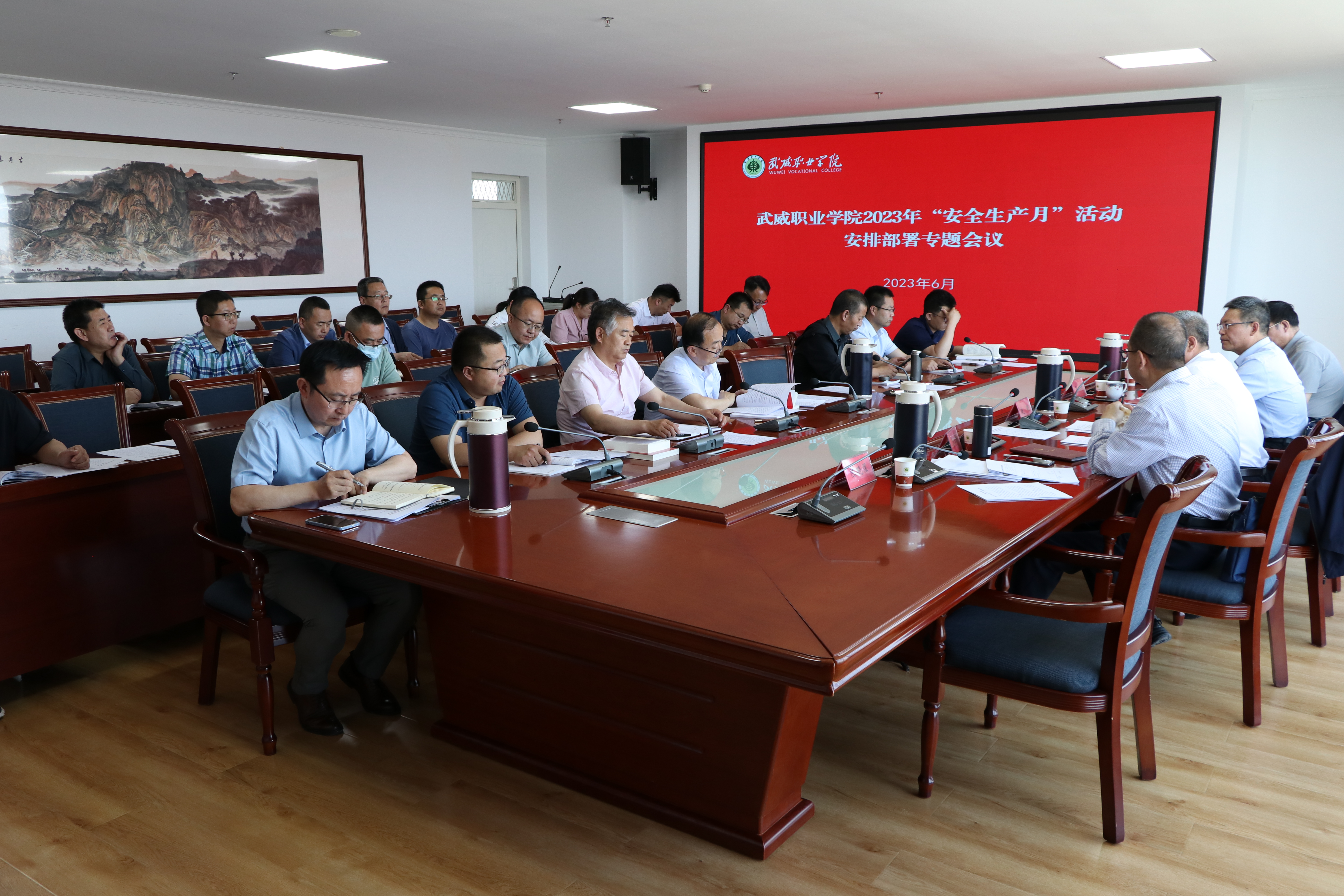 會議傳達(dá)學(xué)習(xí)了省教育廳《關(guān)于開展2023年教育系統(tǒng)“安全生產(chǎn)月”活動的通知》精神,并審定通過了《武威職業(yè)學(xué)院2023年“安全生產(chǎn)月”活動實施方案》。