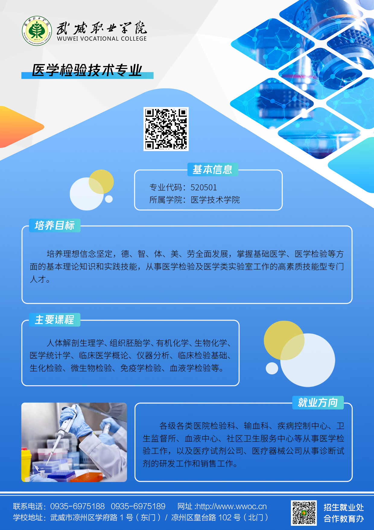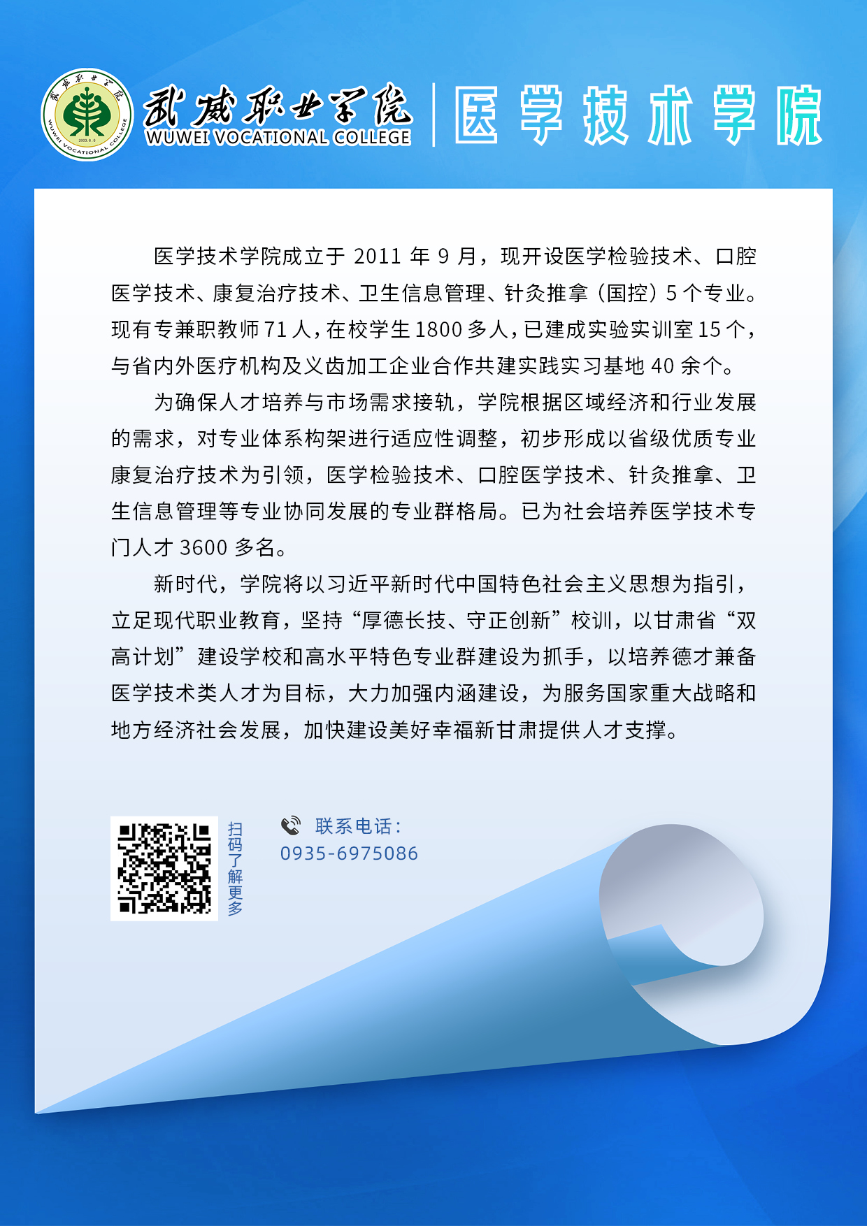 武威職業(yè)學(xué)院二級(jí)學(xué)院專(zhuān)業(yè)簡(jiǎn)介丨醫(yī)學(xué)技術(shù)學(xué)院