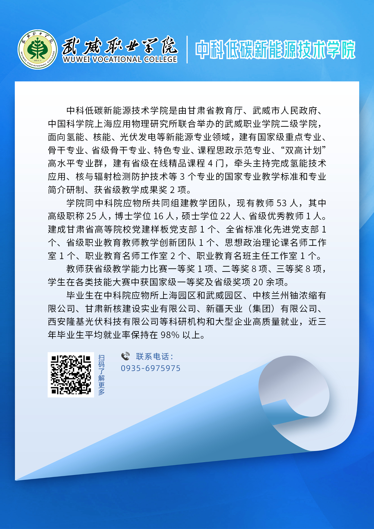 武威職業(yè)學院二級學院專業(yè)簡介丨中科低碳新能源…
