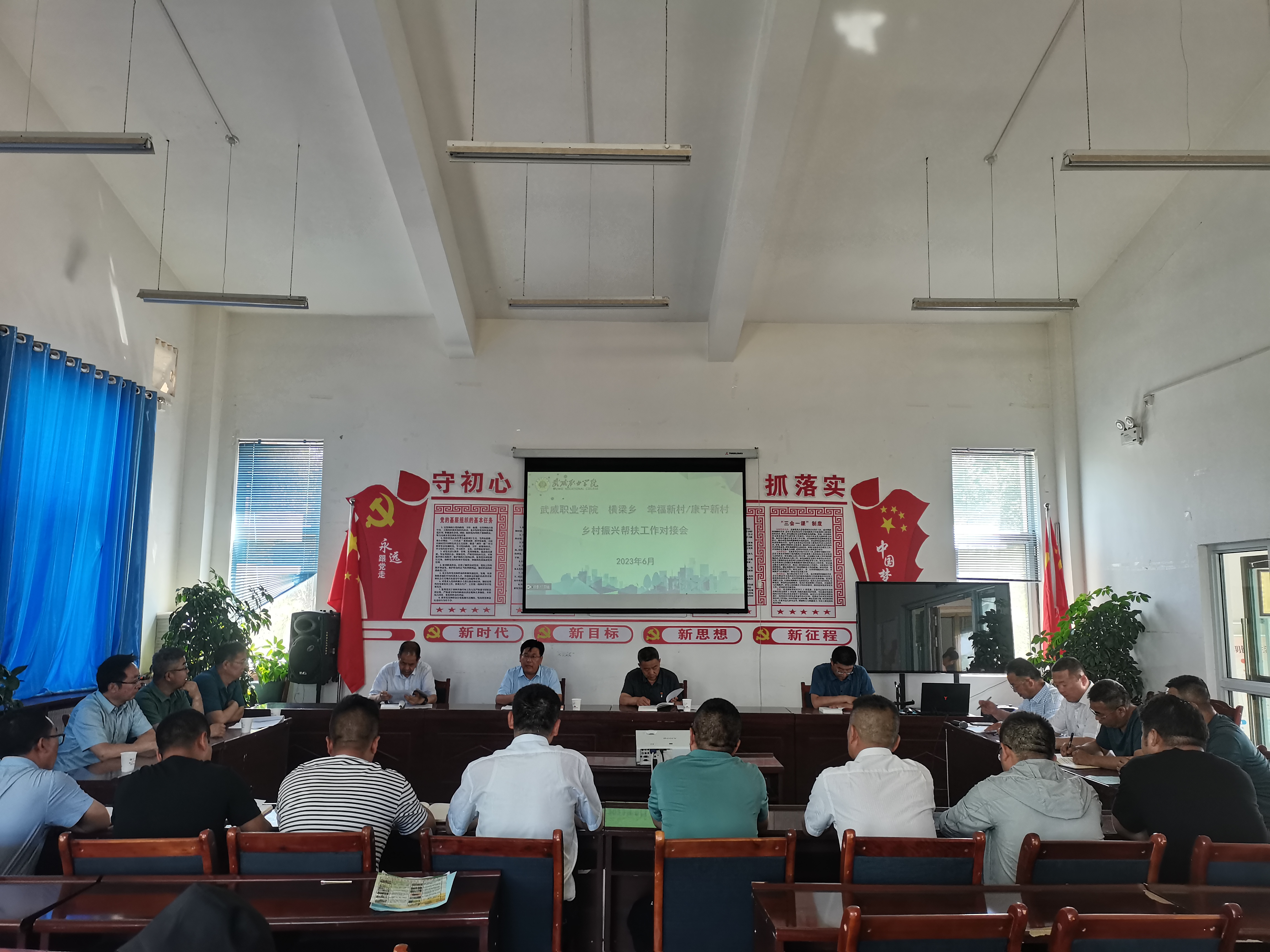 6月21日,學(xué)校專家團隊赴古浪綠洲小鎮(zhèn)召開鄉(xiāng)村振興幫扶工作推進會議。學(xué)校黨委書記、校長趙明教授,黨委副書記翟存祥教授,黨委委員、副校長張開禮教授,橫梁鄉(xiāng)黨委書記何文國,黨委副書記、鄉(xiāng)長張熹中,康寧新村黨支部書記兼主任劉建惠,幸福新村黨支部書記李文海出席會議,村兩委成員、學(xué)校相關(guān)部門負責(zé)人參加會議。