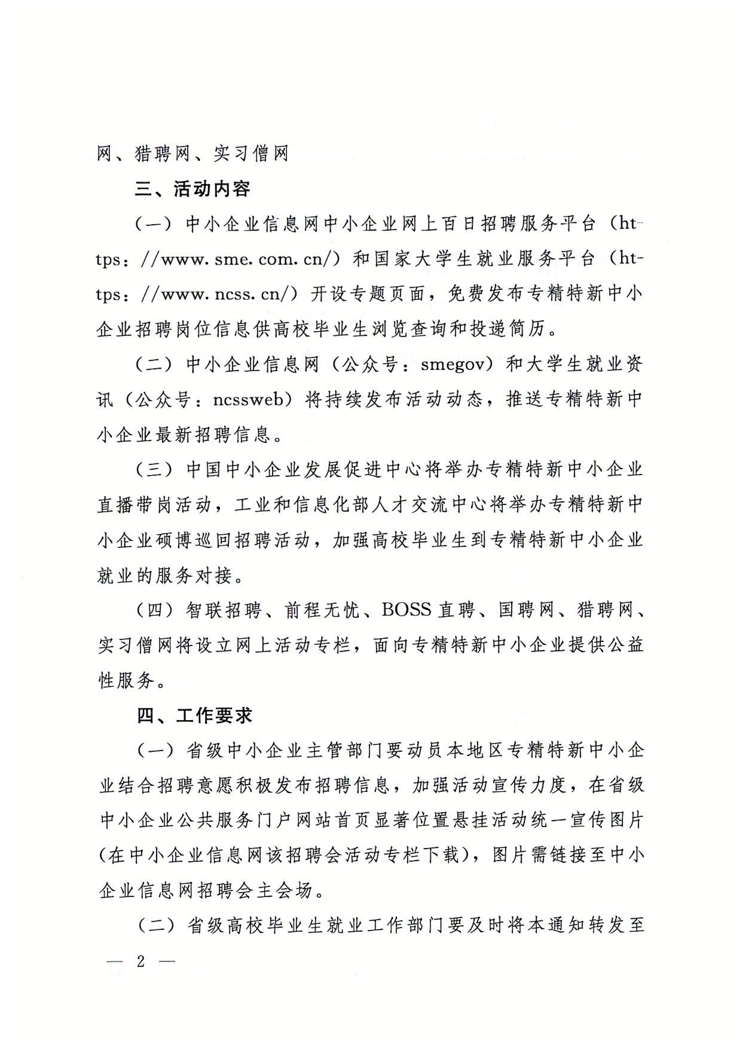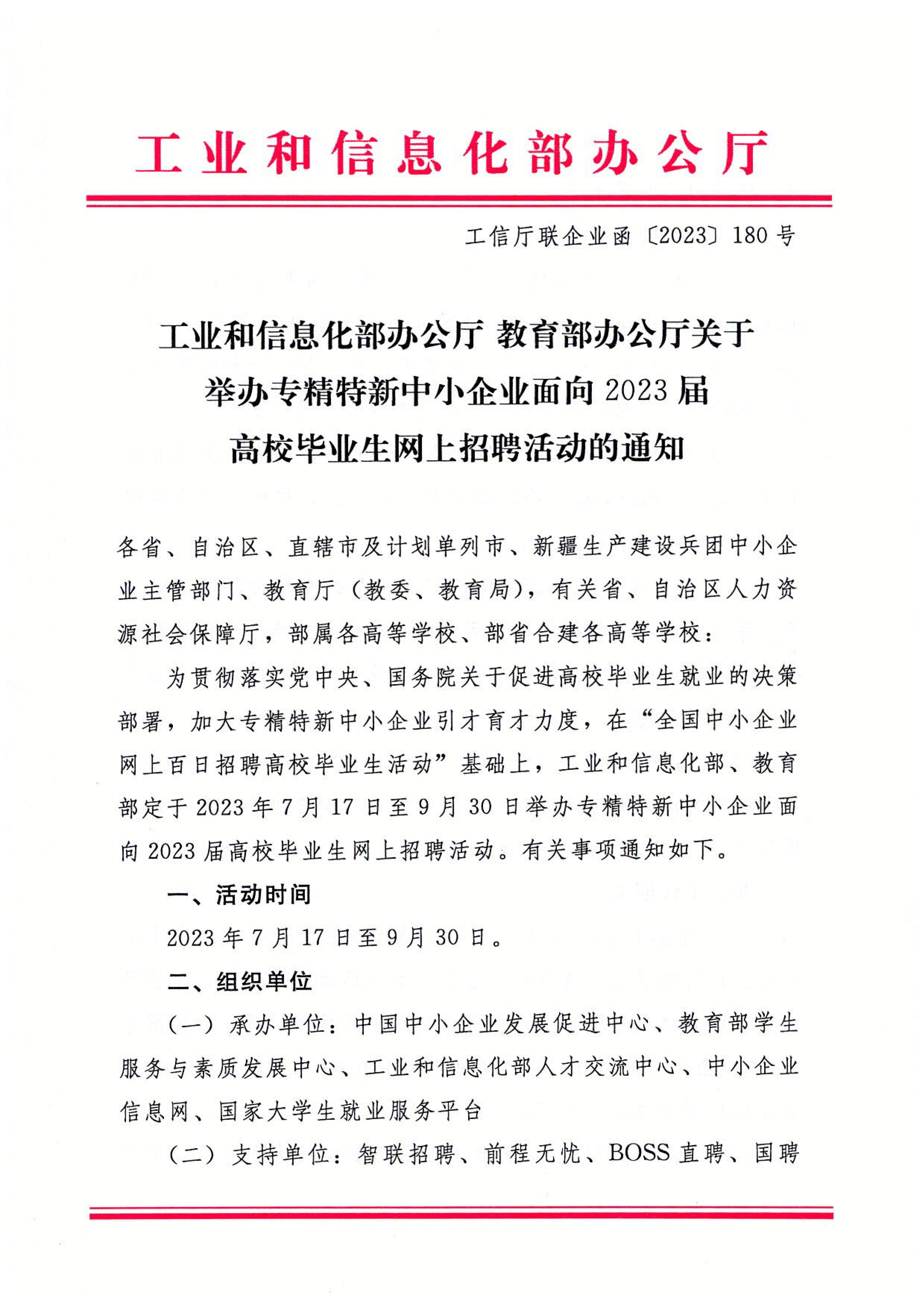 關(guān)于舉辦專(zhuān)精特新中小企業(yè)面向2023屆高校畢業(yè)生網(wǎng)上招聘活動(dòng)的通知