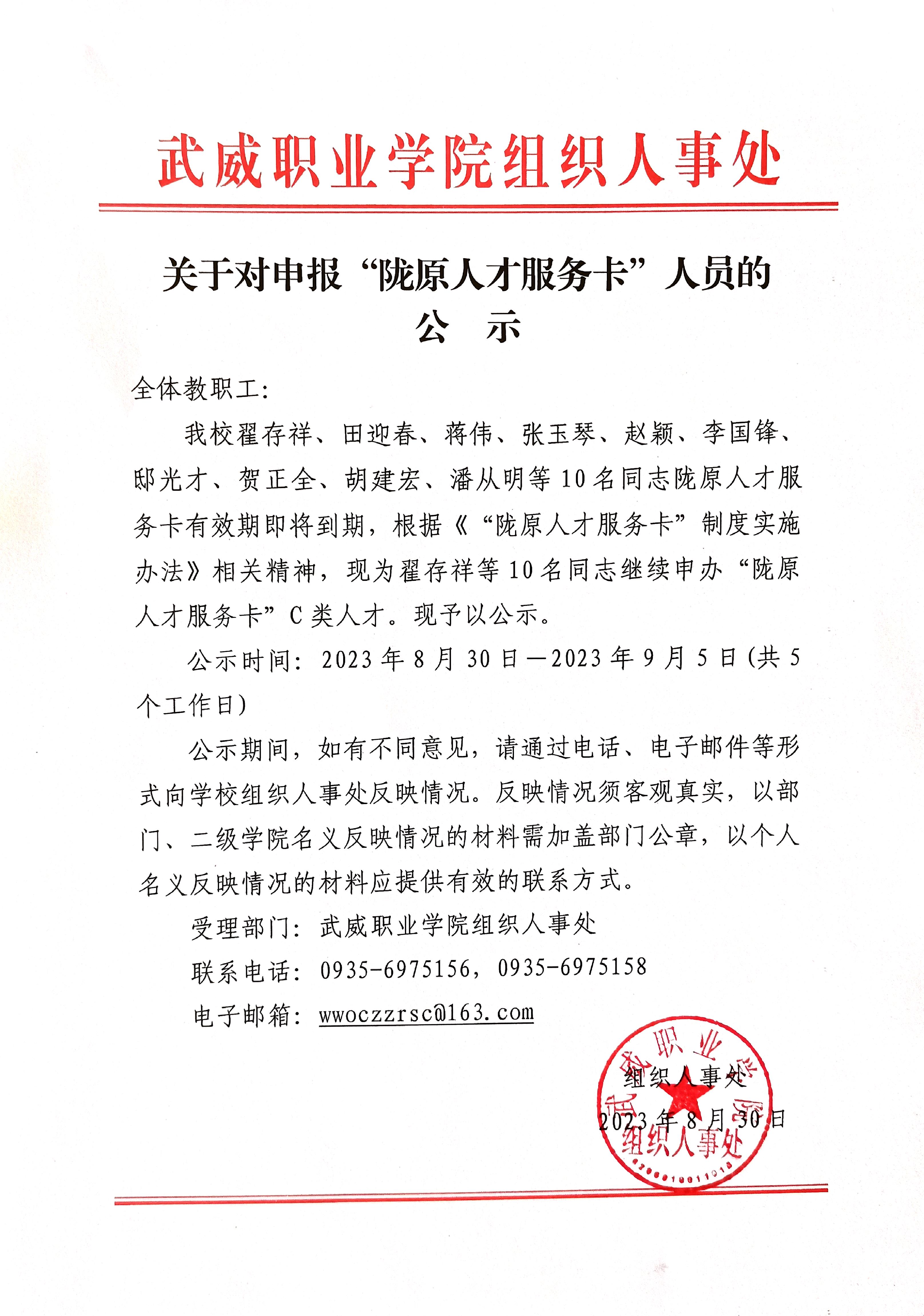 關(guān)于申報(bào)“隴原人才服務(wù)卡”人員的公示