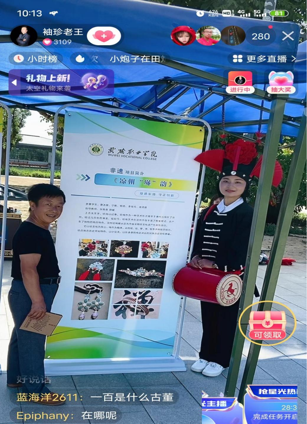 為深入學(xué)習(xí)貫徹習(xí)近平新時(shí)代中國(guó)特色社會(huì)主義思想和黨的二十大精神,引導(dǎo)和幫助廣大青年學(xué)生上好與現(xiàn)實(shí)結(jié)合的“大思政課”,厚植愛(ài)農(nóng)情懷,練就過(guò)硬本領(lǐng)。暑假期間,經(jīng)濟(jì)管理學(xué)院組建了“特色高效農(nóng)業(yè)電商直播+非遺傳承”鄉(xiāng)村振興促進(jìn)團(tuán),開(kāi)展暑期“三下鄉(xiāng)”社會(huì)實(shí)踐活動(dòng),通過(guò)深入雷臺(tái)景區(qū)、古浪縣和民勤縣,宣傳國(guó)家級(jí)非物質(zhì)文化遺產(chǎn),結(jié)合抖音直播與新媒體宣揚(yáng)非遺文化-涼州攻鼓子,為非遺傳承注入青春力量。