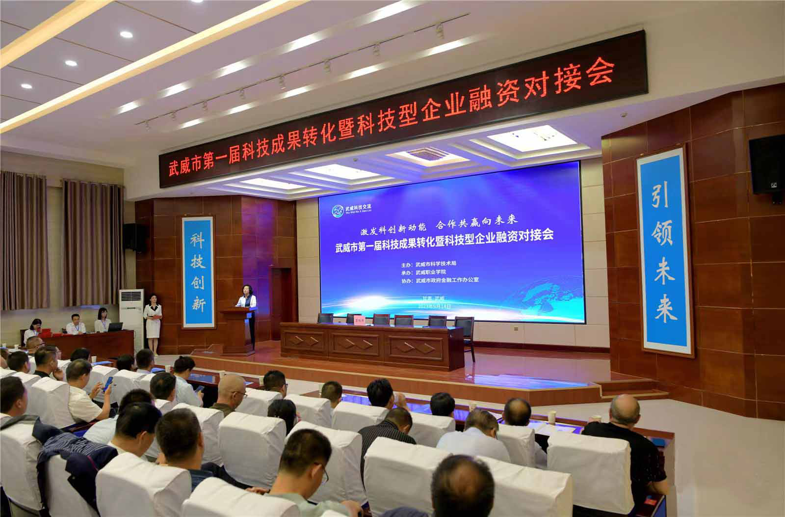 9月14日上午,由武威市科學(xué)技術(shù)局主辦、我校承辦的武威市第一屆科技成果轉(zhuǎn)化暨科技型企業(yè)融資對(duì)接會(huì)在菁英廳成功舉辦,武威市政府黨組成員、副市長(zhǎng)柳生墜,武威市科技局黨組書記、局長(zhǎng)高小華出席本次會(huì)議,縣區(qū)政府分管領(lǐng)導(dǎo),市直有關(guān)單位,有關(guān)企業(yè)負(fù)責(zé)人等共200人參加會(huì)議。