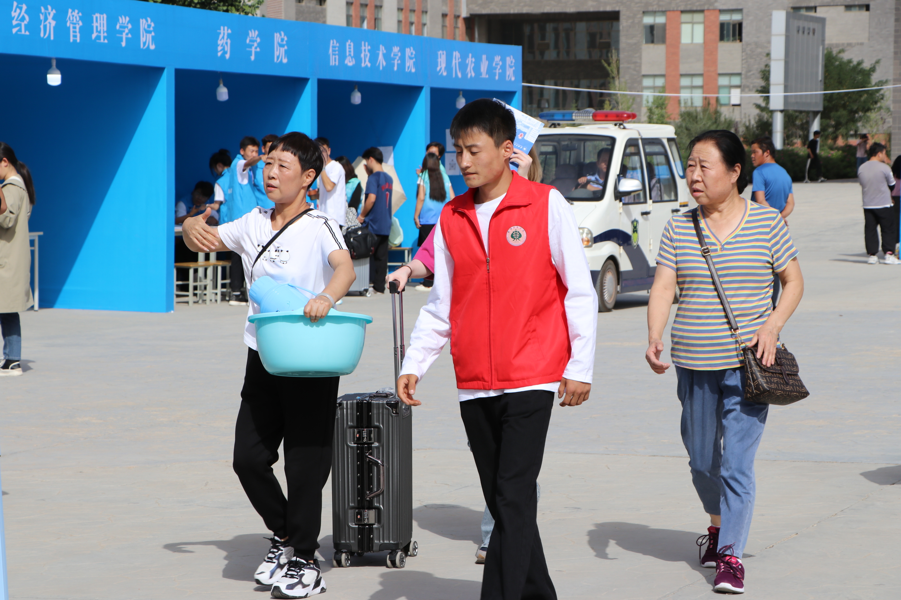 為做好迎新工作,學(xué)校各部門、二級學(xué)院精心組織,志愿者和工作人員為新生和家長提供細(xì)致周到的服務(wù),讓新生和家長第一時間就能感受到學(xué)校的熱情和暖心。校內(nèi)迎新站點前,一輛輛行李車、小推車虛位以待,志愿者們有條不紊,熱情洋溢,為新生提供一站式服務(wù),并耐心為家長答疑解惑。學(xué)校開通“綠色通道”,推出資助政策和各項措施,確保每一位新生安心入學(xué)、舒心生活。LED大屏滾動播放學(xué)校2023年新生實時報到數(shù)據(jù),讓新生和家長及時了解學(xué)校和報到情況。