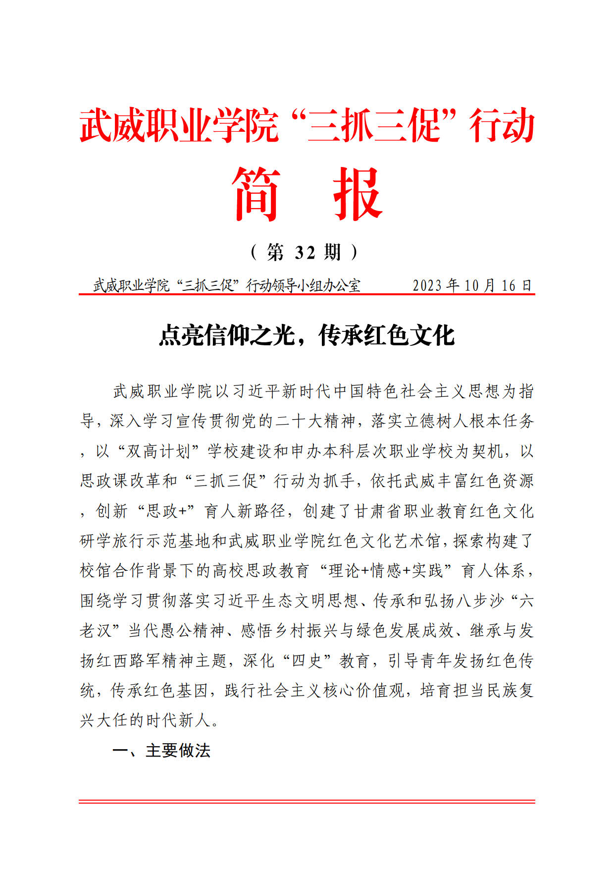 簡報(bào)第32期:點(diǎn)亮信仰之光,傳承紅色文化