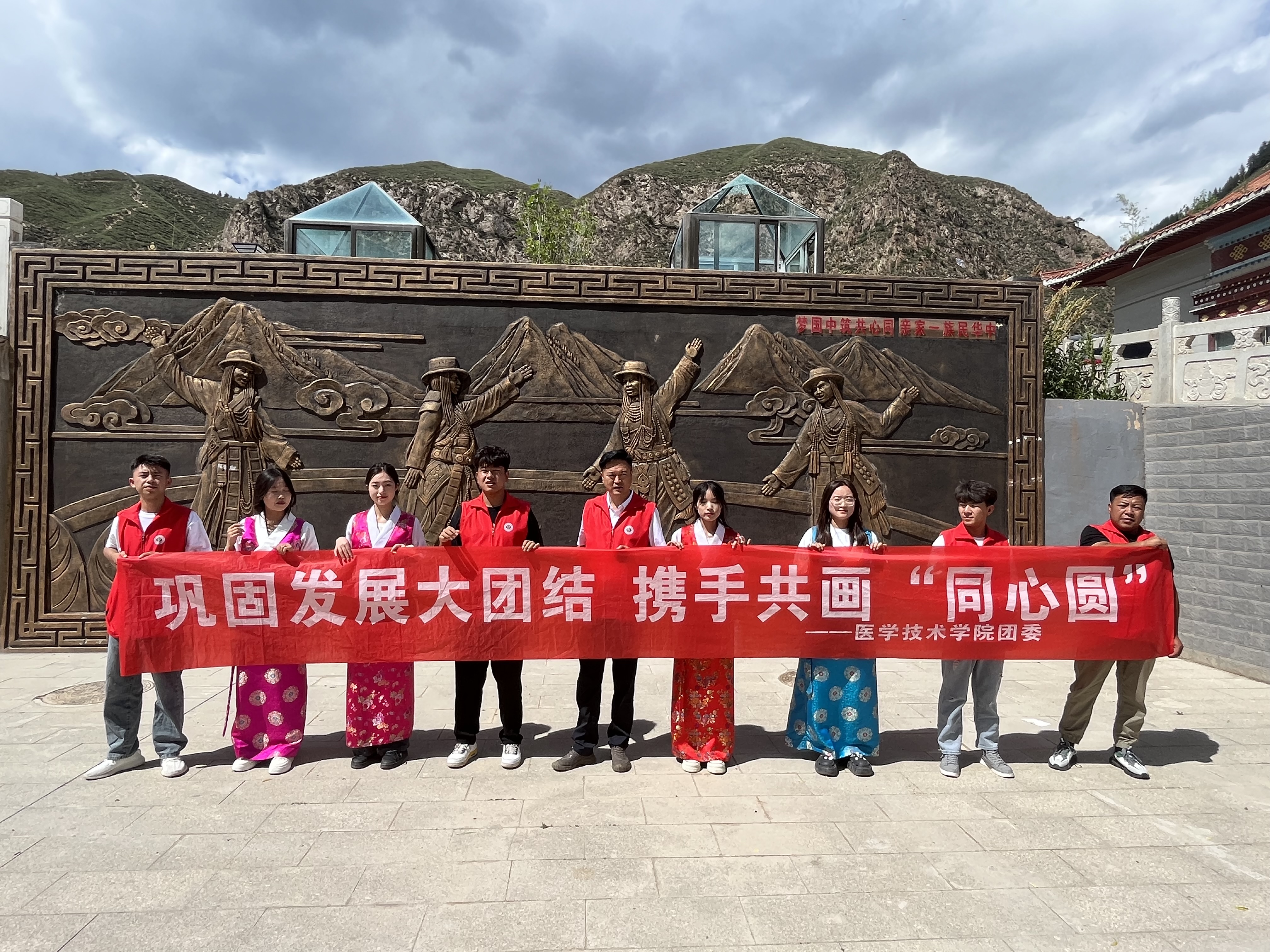 民族團(tuán)結(jié)實(shí)踐團(tuán)以習(xí)近平總書記關(guān)于民族工作重要論述,對甘肅重要講話和指示精神為根本遵循,深入天祝藏族自治縣天堂鎮(zhèn)、炭山嶺村,古浪縣泗水鎮(zhèn)等地,通過拜訪藏區(qū)在黨五十年老黨員、與藏族村民深入交流、舉辦民族團(tuán)結(jié)書法繪畫展,發(fā)放民族團(tuán)結(jié)宣傳手冊等多種形式活動(dòng),旨在引導(dǎo)當(dāng)?shù)厝罕姌淞⒚褡遄院栏信c文化自信心,進(jìn)一步鑄牢中華民族共同體意識。團(tuán)隊(duì)成員通過了解民族團(tuán)結(jié)進(jìn)步呈現(xiàn)的新氣象,充分感知民族地區(qū)發(fā)生的新變化,立志當(dāng)好民族團(tuán)結(jié)進(jìn)步的宣傳者、示范者和踐行者。
