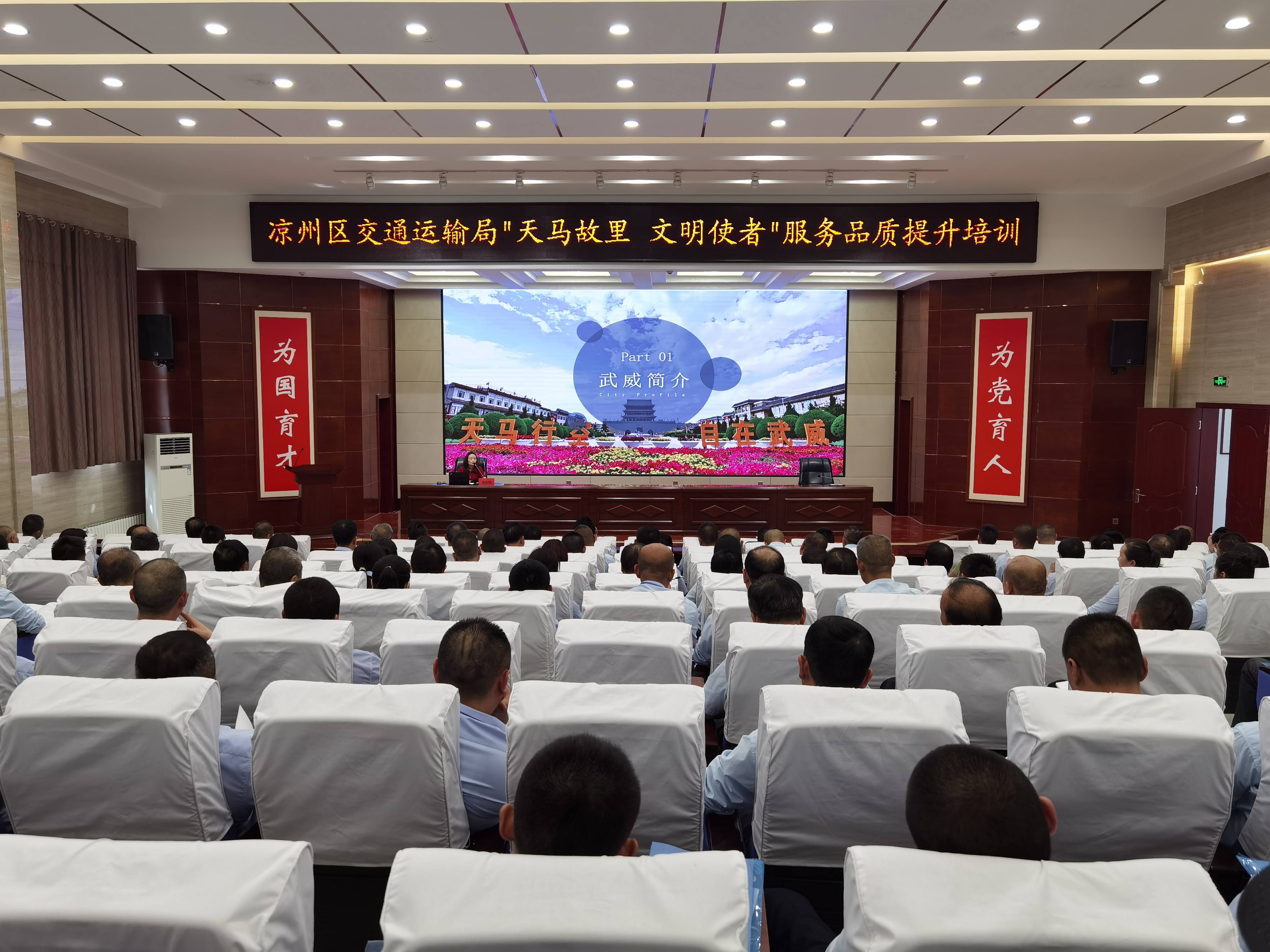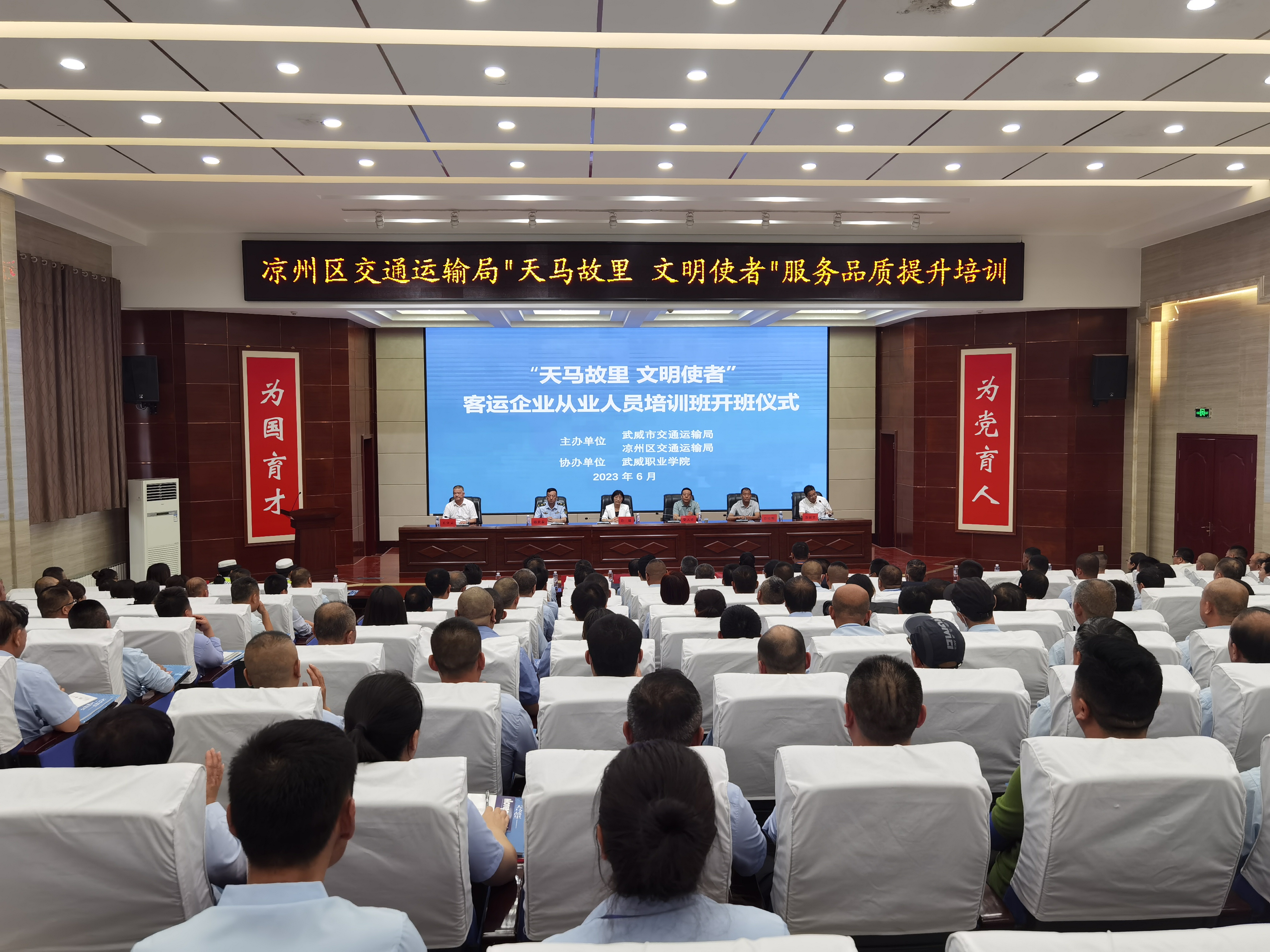 6月28日,“天馬故里 文明使者”客運(yùn)企業(yè)從業(yè)人員服務(wù)品質(zhì)提升培訓(xùn)班在武威職業(yè)學(xué)院開班。市交通局副局長(zhǎng)柴天祥,區(qū)委常委、統(tǒng)戰(zhàn)部部長(zhǎng)、區(qū)政協(xié)黨組書記許娜,市交通運(yùn)輸綜合行政執(zhí)法隊(duì)隊(duì)長(zhǎng)韓世泰,市運(yùn)管局副局長(zhǎng)許培明,學(xué)校黨委委員、副校長(zhǎng)王守云出席開班儀式。開班式由涼州區(qū)交通運(yùn)輸局副局長(zhǎng)蘇銀堂主持,出租客運(yùn)公司、城市公交公司和定制客運(yùn)公司管理人員及從業(yè)人員220人參加開班儀式。