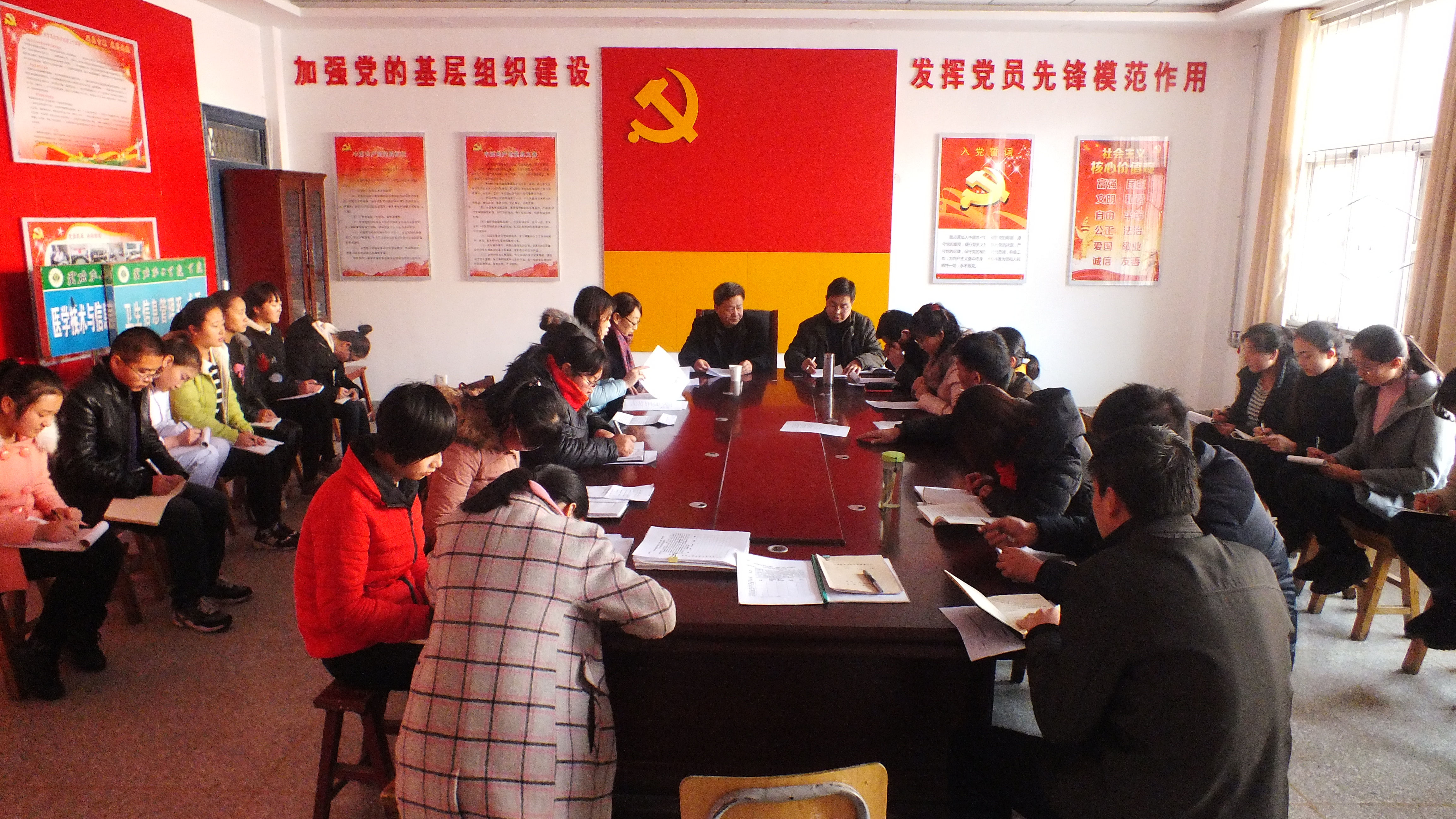 趙明在會(huì)議上指出,認(rèn)真開展“兩學(xué)一做”專題學(xué)習(xí)教育應(yīng)與具體工作相結(jié)合,護(hù)理系當(dāng)前主要工作是申報(bào)臨床醫(yī)學(xué)專業(yè),各位教師要對(duì)照臨床醫(yī)學(xué)專業(yè)評(píng)審條件,做好省衛(wèi)生計(jì)生委專家來校進(jìn)行評(píng)審的材料準(zhǔn)備工作。要求各黨員同志要敢于擔(dān)當(dāng),勇于擔(dān)當(dāng),堅(jiān)持“三會(huì)一課”制度,增強(qiáng)班子的凝聚力和向心力,建設(shè)一個(gè)堅(jiān)強(qiáng)有力的黨支部。