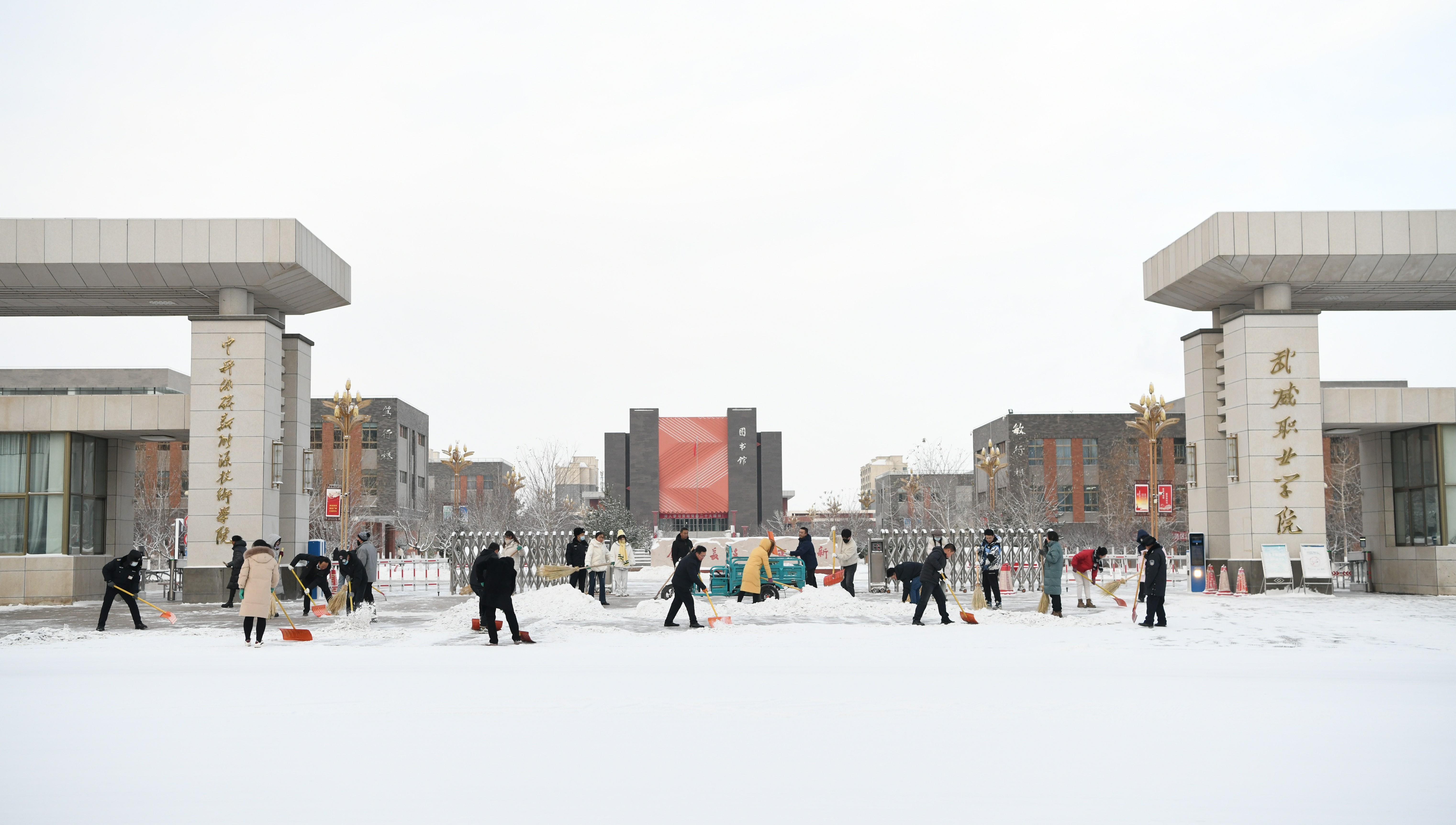 12月14日,我市迎來了一場(chǎng)大雪。紛紛揚(yáng)揚(yáng)的雪花為美麗的校園披上了潔白的盛裝,也為學(xué)校的出行帶來了不便。為助力全國文明城市創(chuàng)建工作,保障全校師生的出行安全和道路暢通。15日清晨,學(xué)校組織行政工作人員開展鏟雪除冰志愿服務(wù)活動(dòng)。