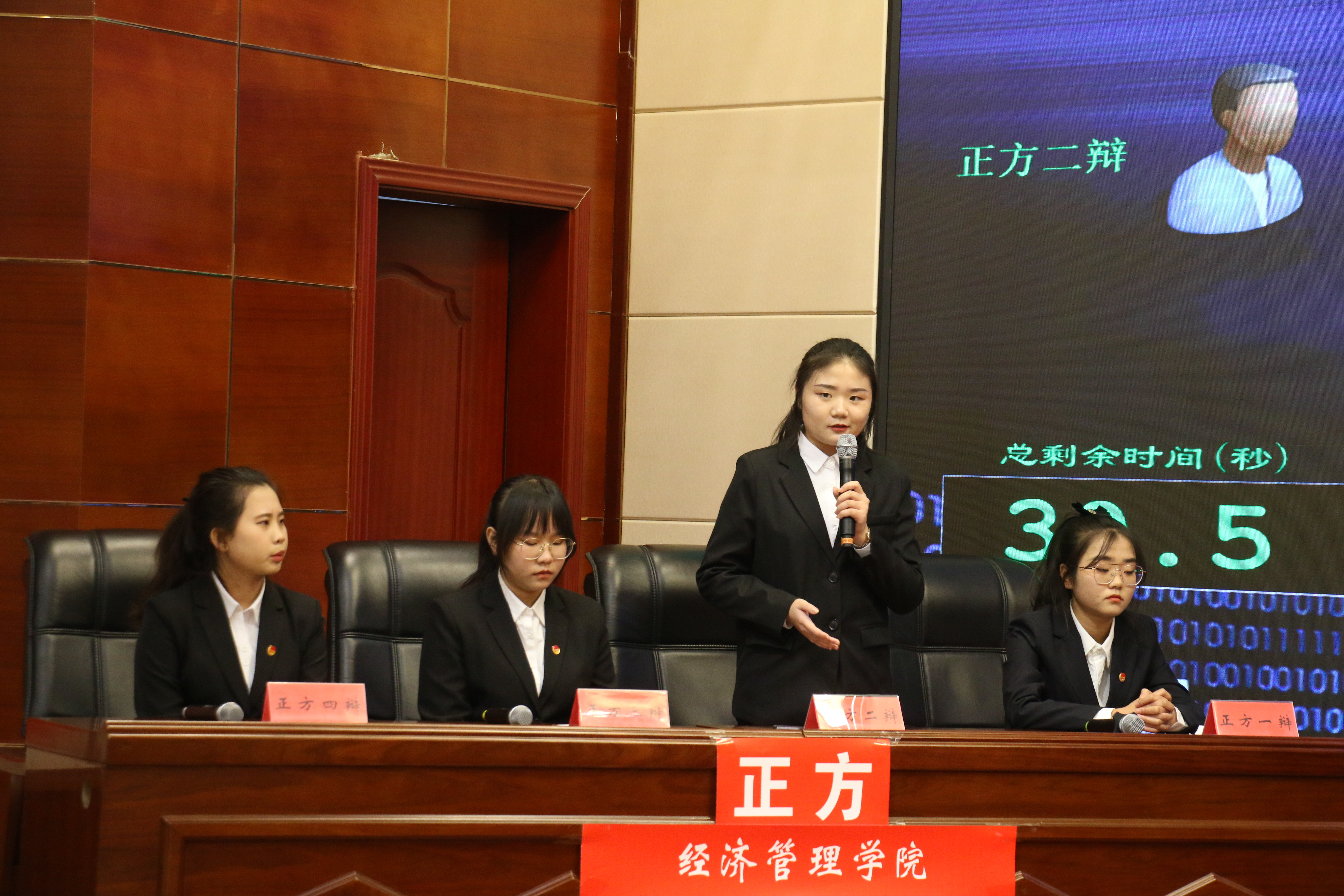 本屆辯論賽圍繞青年成長成才、社會(huì)熱點(diǎn)主題展開,共有來自不同學(xué)院的9支隊(duì)伍參與角逐,自11月啟動(dòng)以來共進(jìn)行了12場(chǎng)比賽。在決賽現(xiàn)場(chǎng),正反雙方針對(duì)青年成才機(jī)遇大于能力還是能力大于機(jī)遇展開思辨,比賽過程中雙方辯手唇槍舌戰(zhàn)、妙語連珠、針鋒相對(duì)、精彩不停,一問一答間透出的是大學(xué)生理性思考的光輝,鏗鏘有力的話語展露的是青年的時(shí)代責(zé)任與使命。