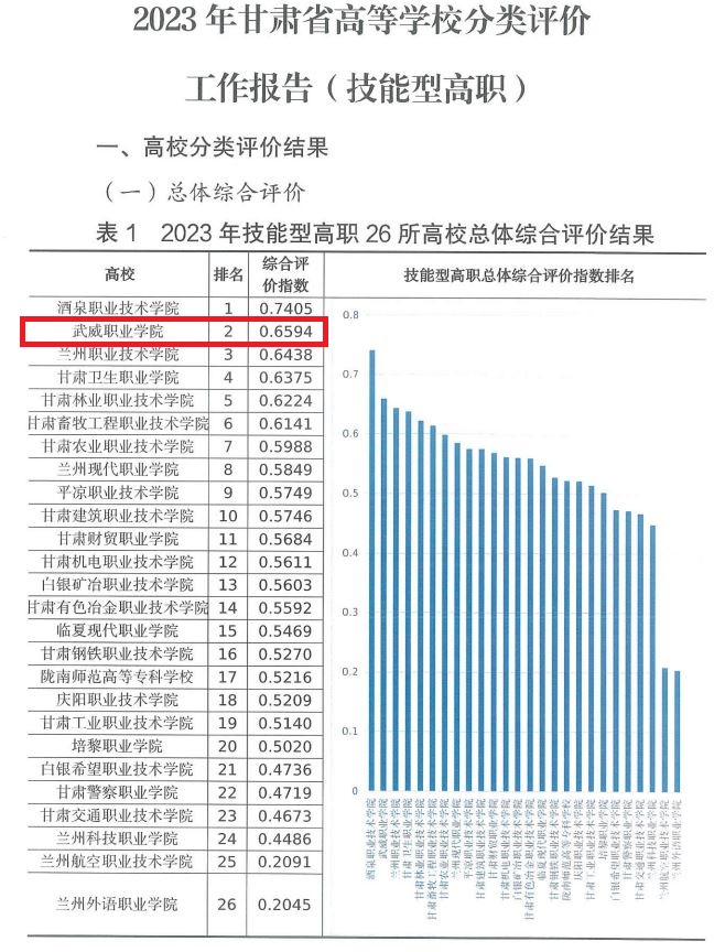 武威職業(yè)學院2023年高校分類評價結果綜合排名第二