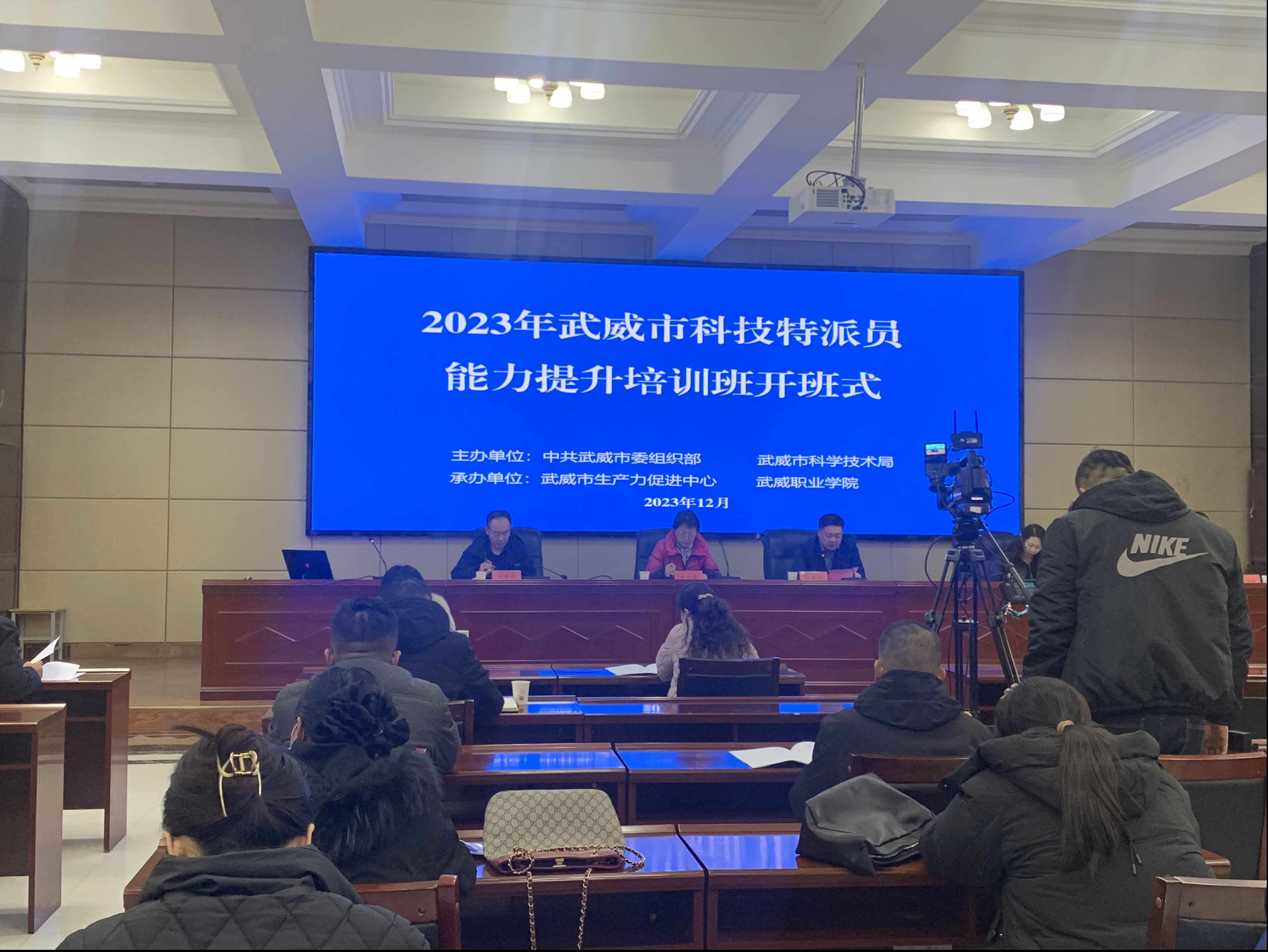 12月18日下午,武威市科技特派員能力提升班在武威職業(yè)學院行樹樓北側(cè)報告廳順利開班。市科技局副局長寧攀學同志,武威職業(yè)學院黨委委員、副校長田迎春同志,市科技局生產(chǎn)力促進中心主任方青春同志等出席開班儀式。本次培訓采用“線上+線下”的方式進行,武威市三縣一區(qū)的44名科技特派員參加現(xiàn)場培訓,全市500名科技特派員參加線上培訓。