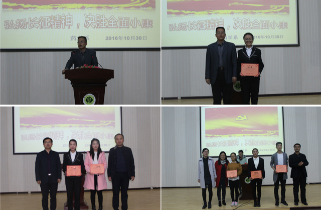 為紀(jì)念紅軍長(zhǎng)征勝利80周年,激發(fā)師生弘揚(yáng)偉大的長(zhǎng)征精神,同時(shí)為豐富校園文化生活,展示青春正能量,武威職業(yè)學(xué)院藥學(xué)系團(tuán)總支依據(jù)院團(tuán)委的通知精神和系團(tuán)學(xué)工作委員會(huì)關(guān)于增加學(xué)生課余活動(dòng)的會(huì)議要求,于10月30日在正德廳組織開(kāi)展了“傳承長(zhǎng)征精神,筑我青春夢(mèng)想”主題演講比賽。藥學(xué)系主任魏潤(rùn)明出席了本次活動(dòng),各班班主任擔(dān)任本次比賽評(píng)委,2016級(jí)全體學(xué)生和2015級(jí)各班學(xué)生代表觀看了比賽。