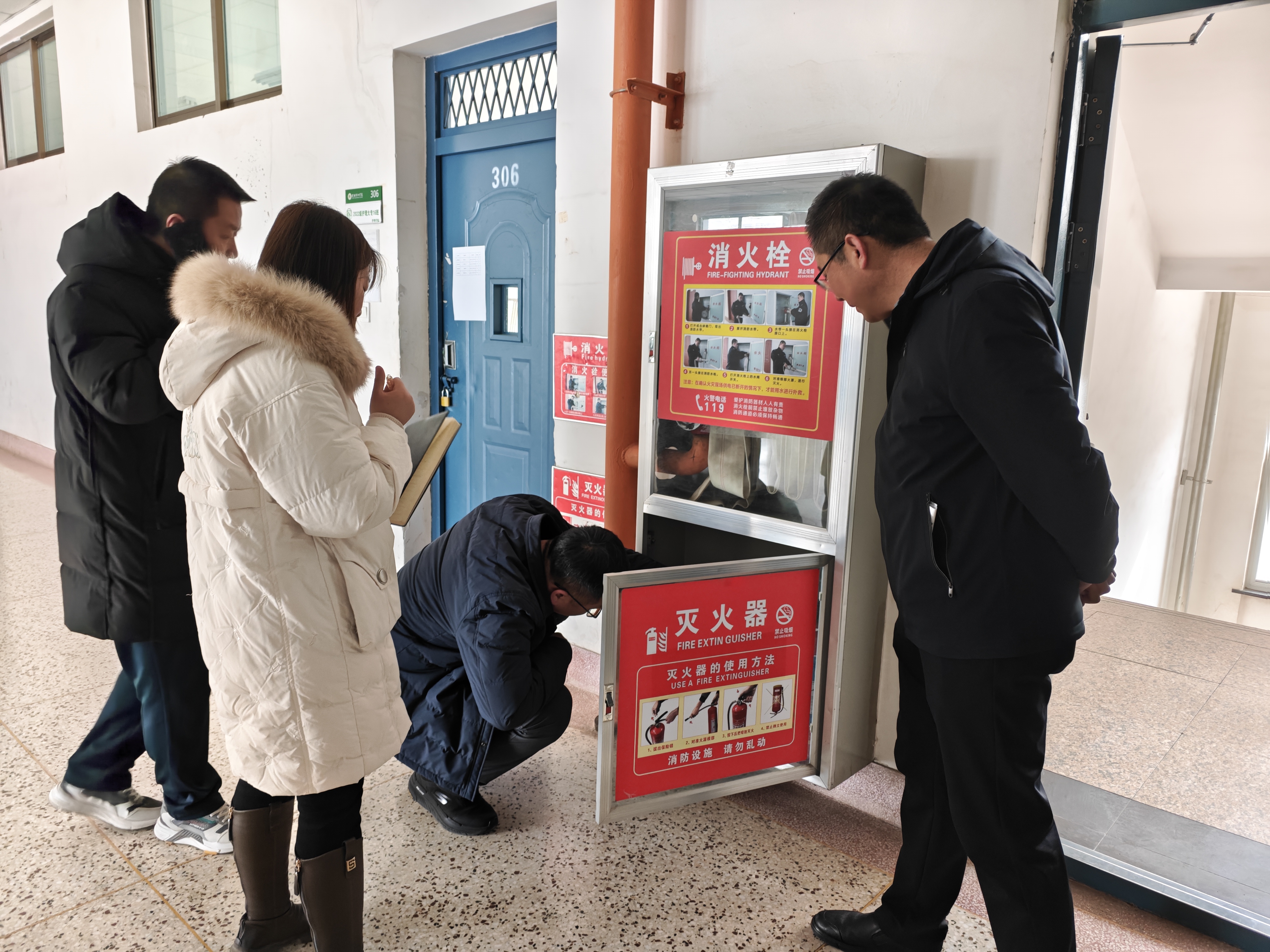 在實驗實訓室內(nèi),督察組詢問設(shè)施設(shè)備準備情況,逐一檢查實訓場地內(nèi)消防安全設(shè)施配備情況。