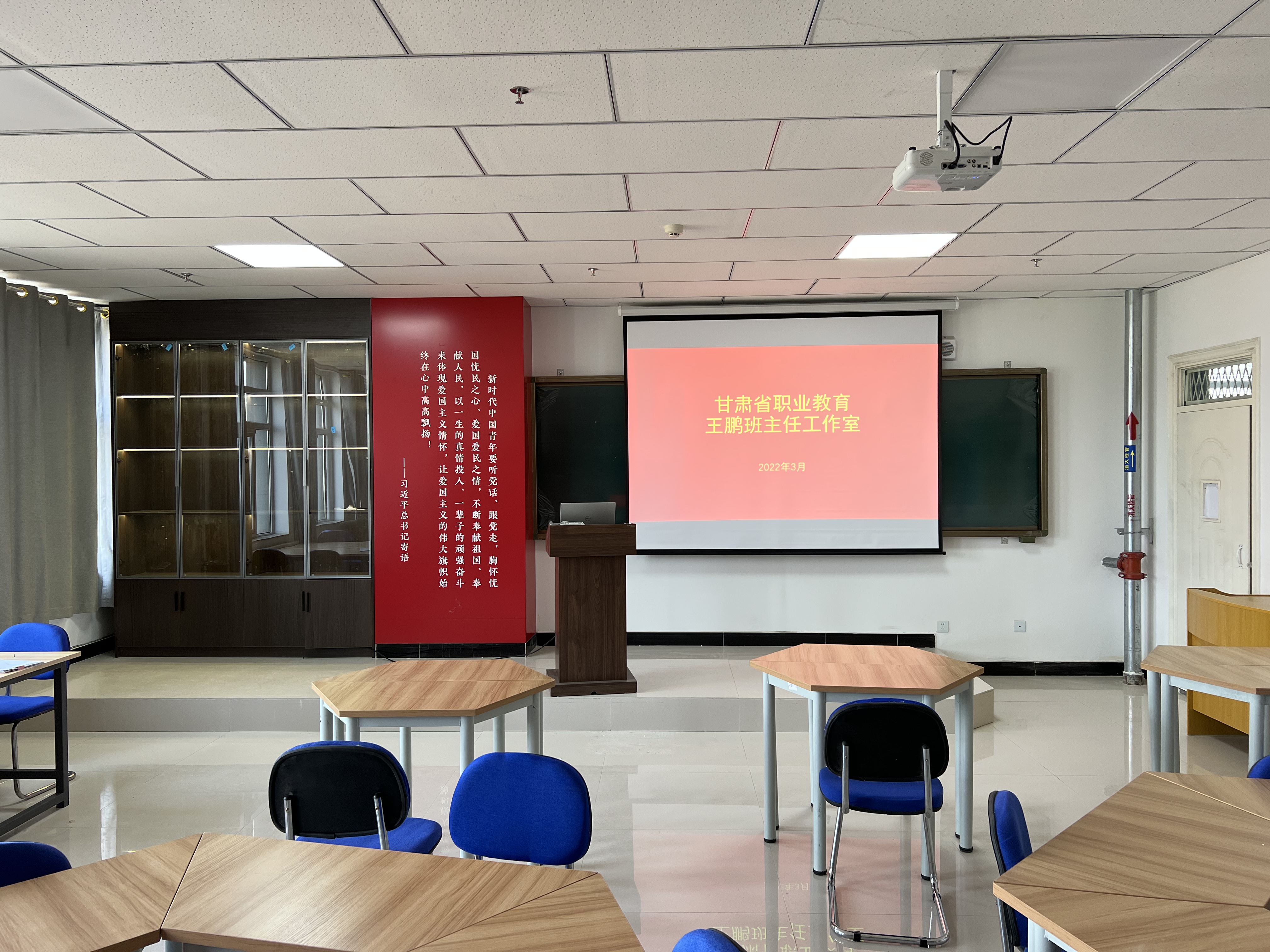 甘肅省職業(yè)教育王鵬班主任工作室于2021年7月由甘肅省教育廳批準成立,建設(shè)周期四年,特聘顧問2名,骨干成員8名,試點班級2個。工作室位于能源科技樓二樓,建設(shè)面積50平方米,設(shè)置業(yè)務(wù)培訓(xùn)、主題沙龍、檔案資料、日常辦公四個區(qū)域,截至目前累計投入建設(shè)經(jīng)費2.88萬元。工作室自成立以來,堅持“楷模引領(lǐng)、名師指導(dǎo)、全面協(xié)調(diào)、骨干建設(shè)”的工作思路,以思想政治教育、班主任業(yè)務(wù)能力提升、大學生骨干班培訓(xùn)、社會實踐鍛煉、學生職業(yè)生涯規(guī)劃、參軍入伍、心理健康教育、職業(yè)素養(yǎng)提升等方面開展研究實踐,有序推進工作室各項建設(shè)工作。