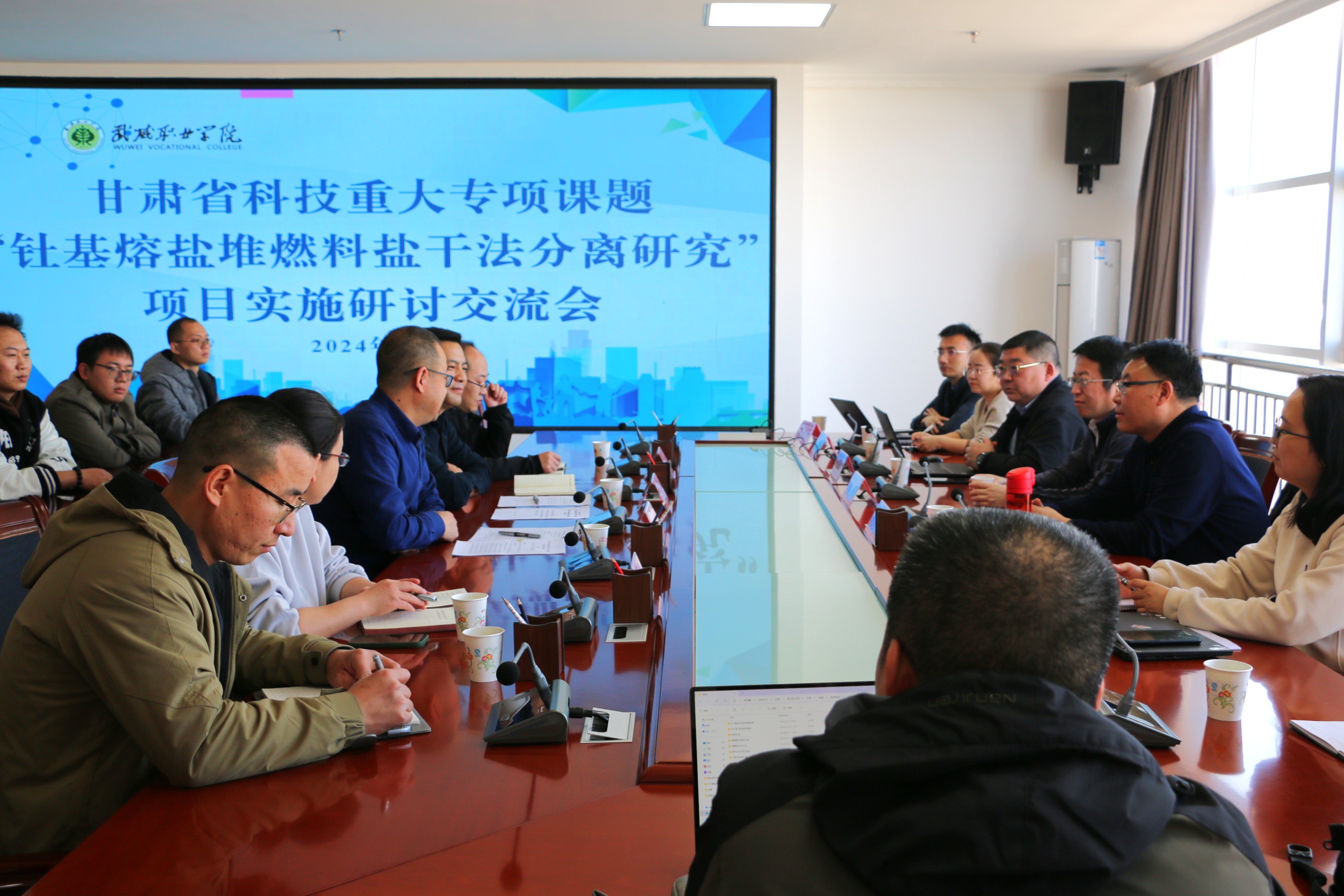 2024年3月11日,甘肅省科技重大專(zhuān)項(xiàng)課題“釷基熔鹽堆燃料鹽干法分離研究”項(xiàng)目實(shí)施研討交流會(huì)在武威職業(yè)學(xué)院能源科技樓811舉行。中科武威新能源研究所主任趙先堂,中國(guó)科學(xué)院上海應(yīng)用物理研究所主任龔昱一行15人,武威職業(yè)學(xué)院黨委副書(shū)記翟存祥出席此次會(huì)議。項(xiàng)目骨干、武威職業(yè)學(xué)院教師代表約50人參加此次會(huì)議。會(huì)議由中科低碳新能源技術(shù)學(xué)院副院長(zhǎng)黃述杰主持。